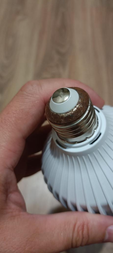 The bulb is working, shines brightly, but with traces of rust