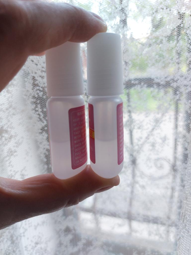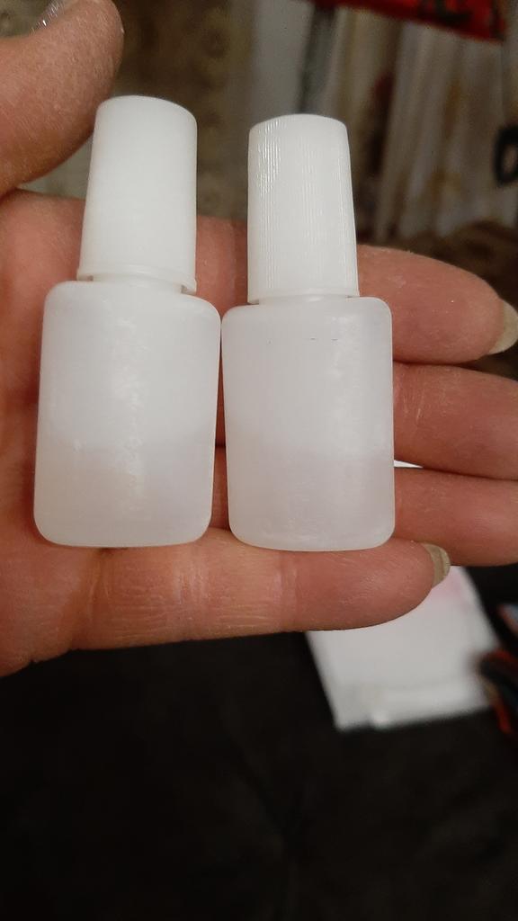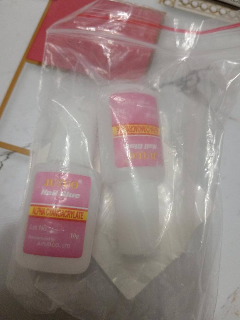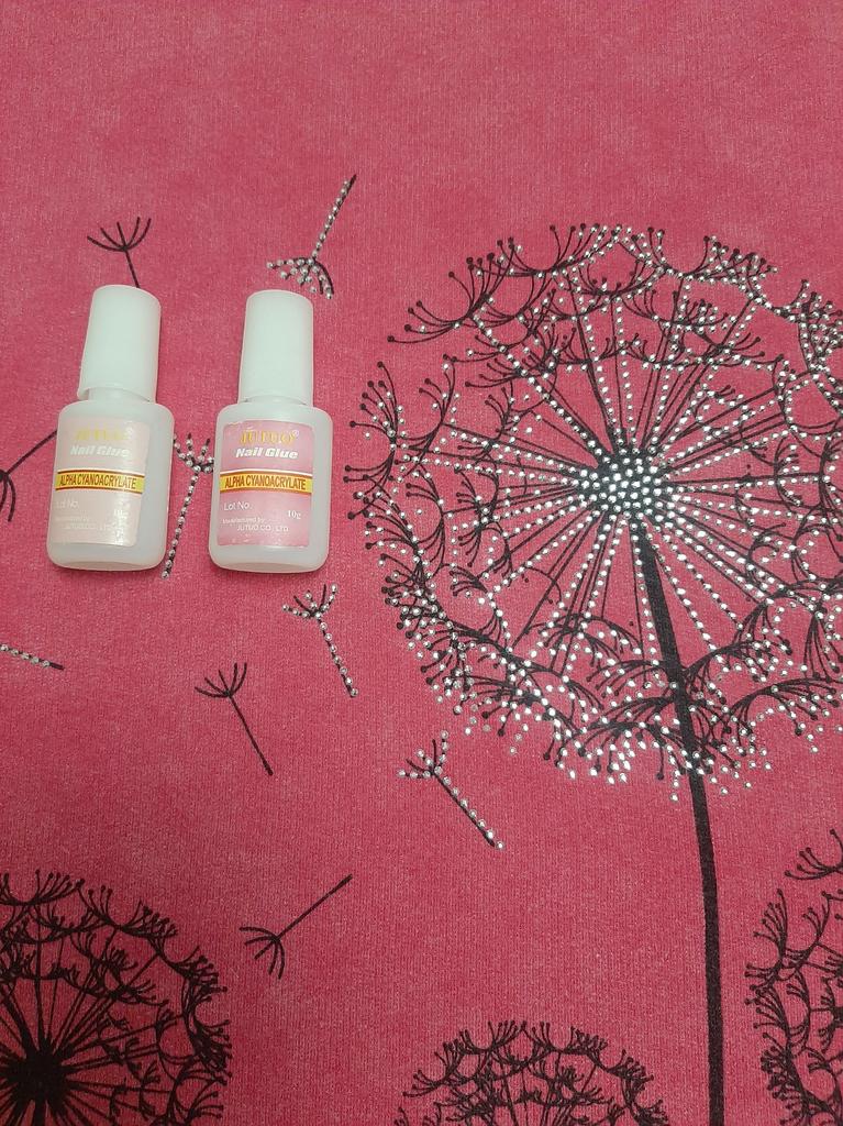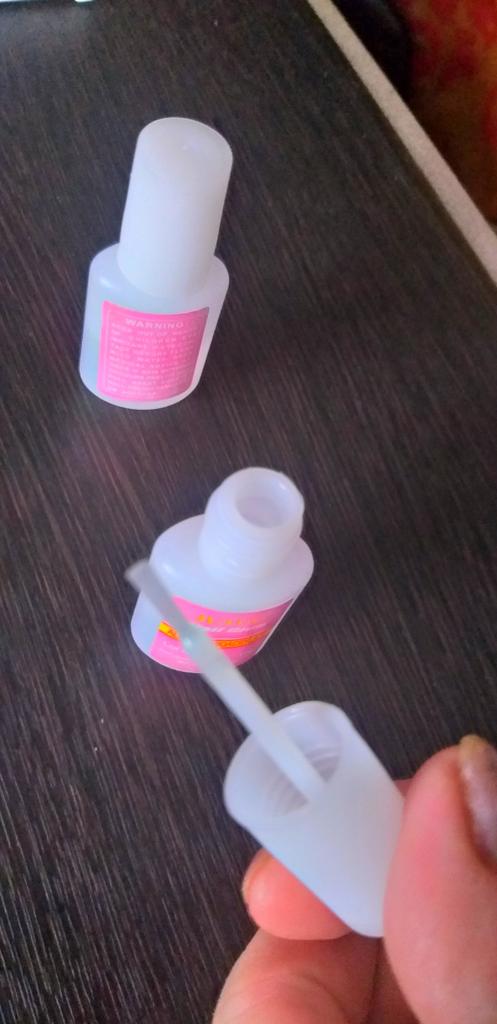 One glue with a bright sticker, the second with a faded one. The brush is good, the elastic hairs evenly distribute the “liquid” over the nail, but the tips are not fixed. Useless purchase.(