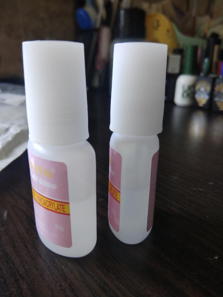 They pour in just a little bit of glue. This is a 10 gram bottle, but 5 grams are poured in. 10 - this is in two bottles. If you look closely, you can see how much is poured in, a little less than half. But the bottles are convenient. You can pour it all into one right away. And I buy the glue here and pour it in.