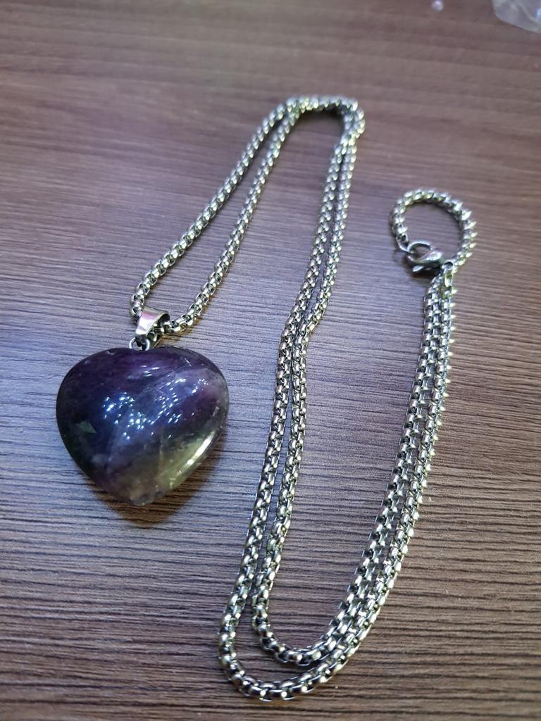 1Pcs Lot Natural Stone Necklace Pendant Heart Shaped Crystal Amethyst Agate Opal Stainless Steel Chain Necklaces for Women Jewelry 30x30x10 Mm