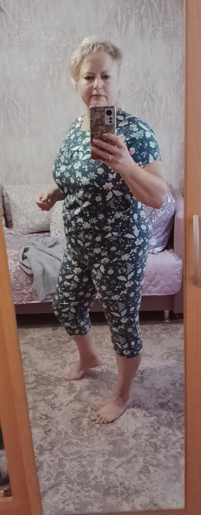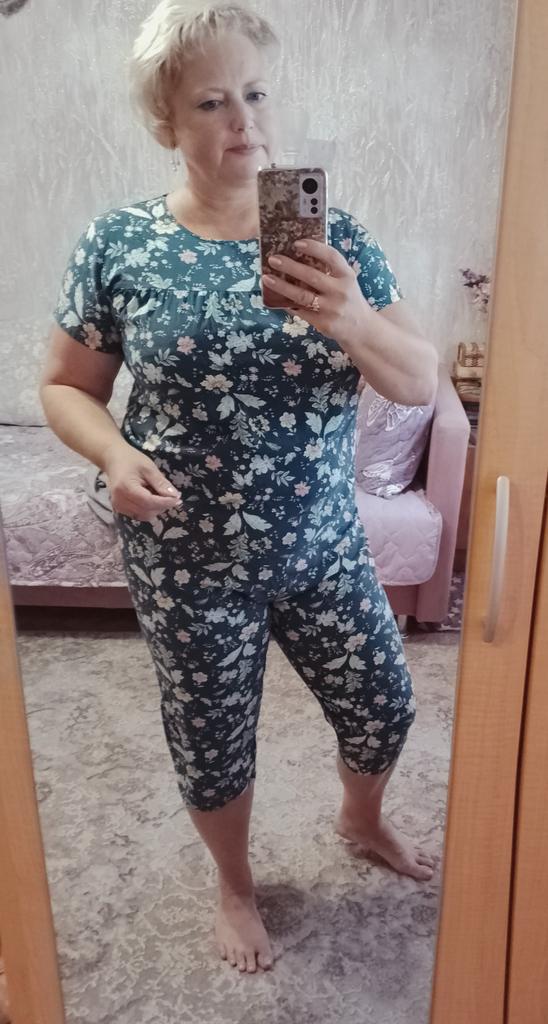 My size is 50-52. Nice, loose pajamas. And it's better than tight ones. Coloring in the picture more interesting than it actually is