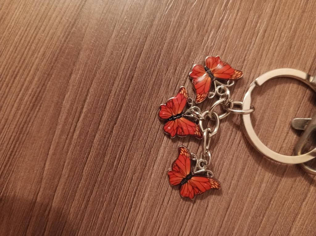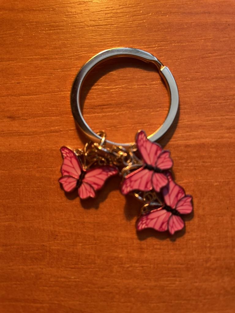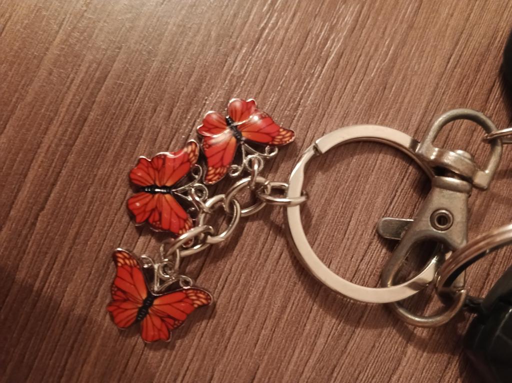 A cute little keychain. The product corresponds to the pictures in the store. The butterflies are colored on one side only, as in the attached pictures