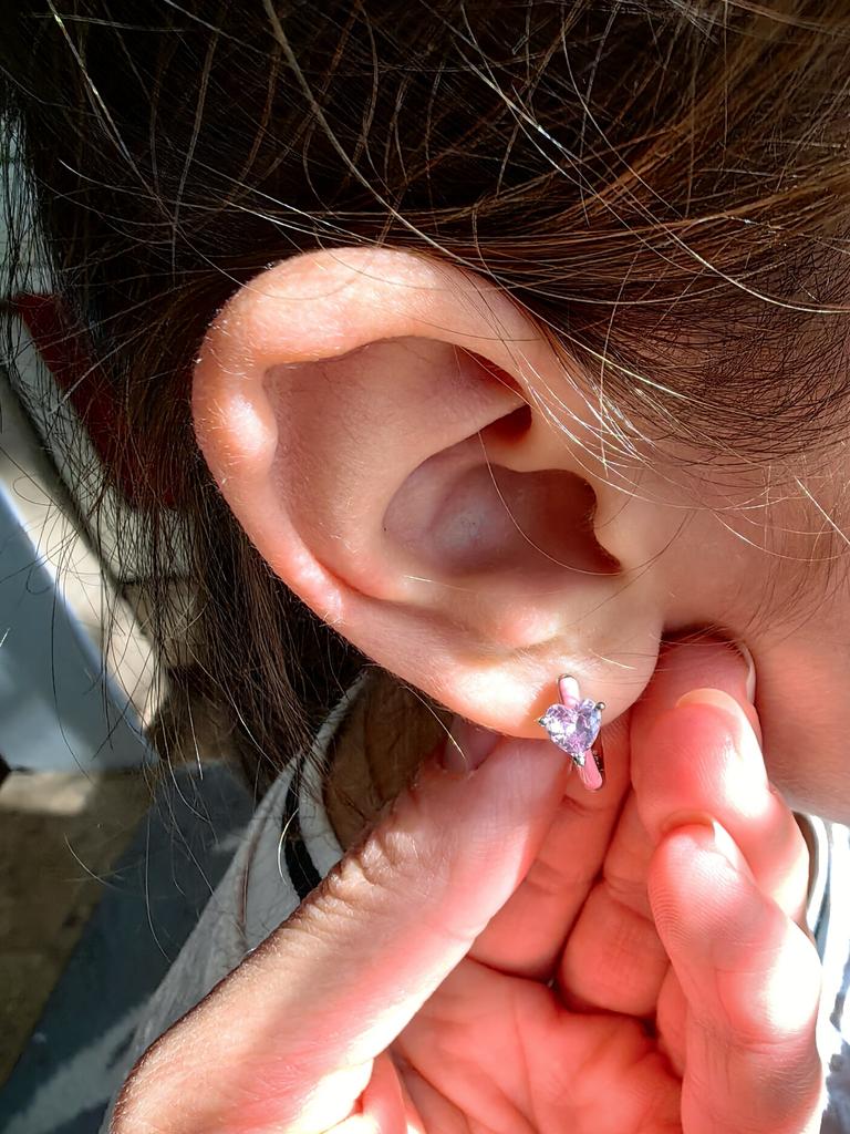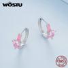 BAMOER Real 925 Sterling Silver Pink Heart Zircon Hoop Earrings Lovely Cindy Color Oil Printed Ear Clips Earring Girl Party Gift