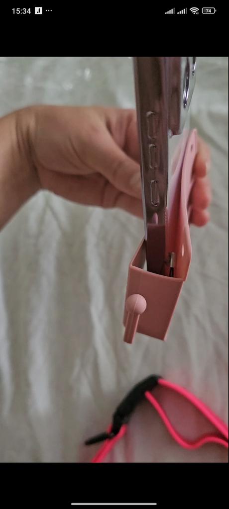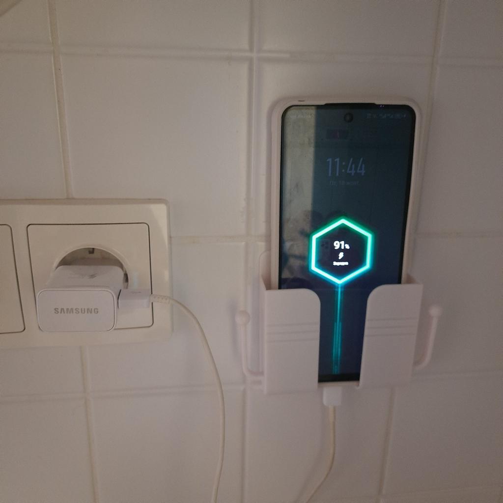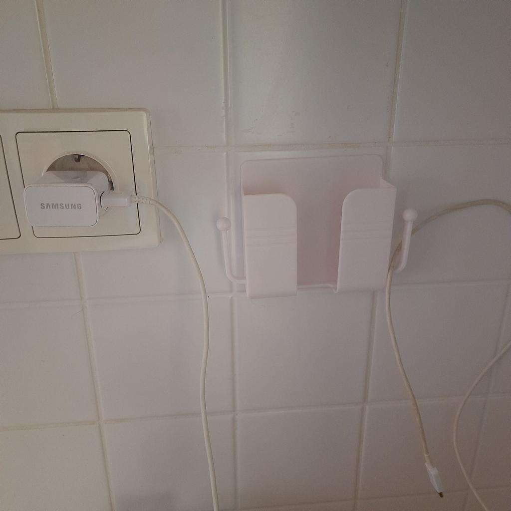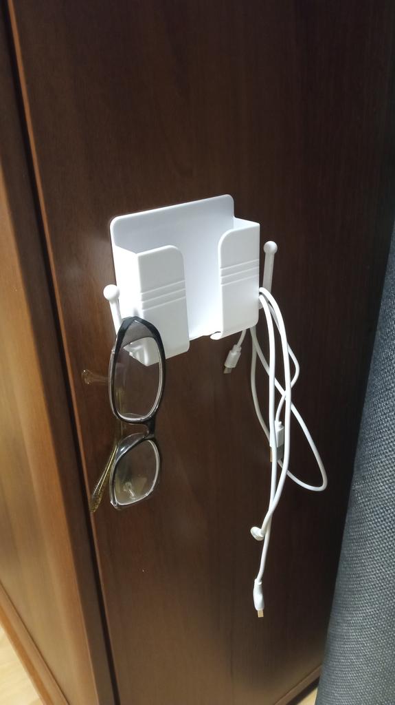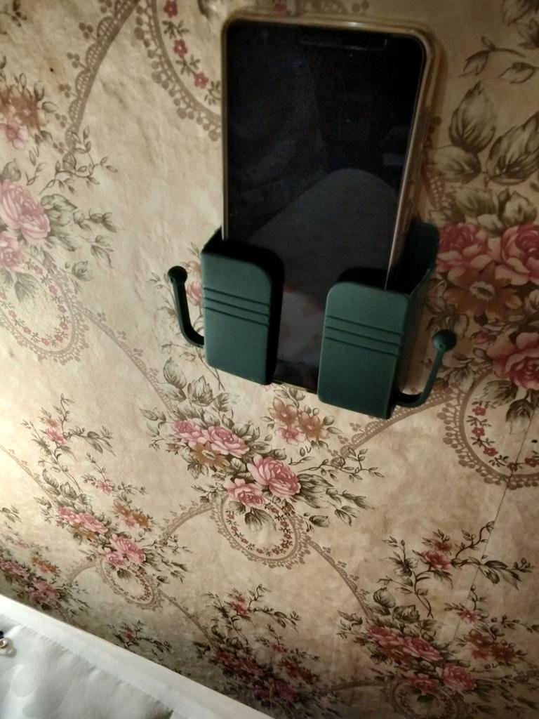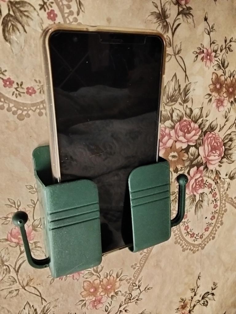 Excellent phone stand. Neatly made. You can hang a charger or something else on the hooks. I dropped my phone from the nightstand half asleep. Now it will be on the wall. If it falls, it will fall on the bed. Simple, but very convenient. Holds firmly.