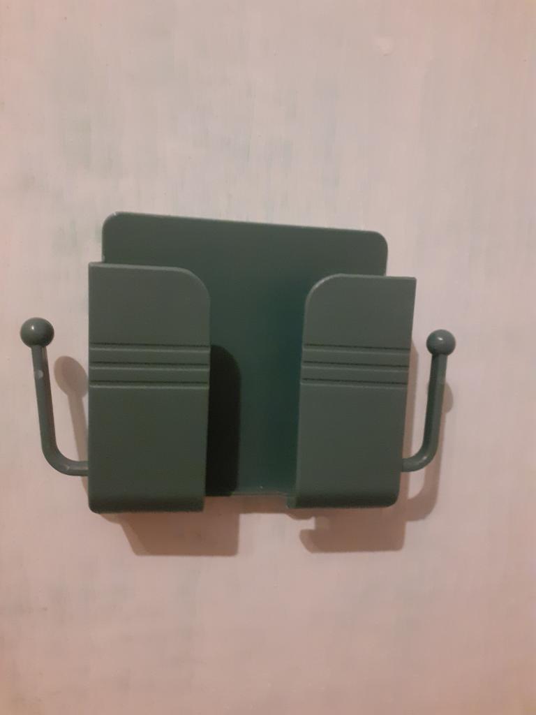Very convenient wall container for the air conditioner remote control, for a phone with a charger!