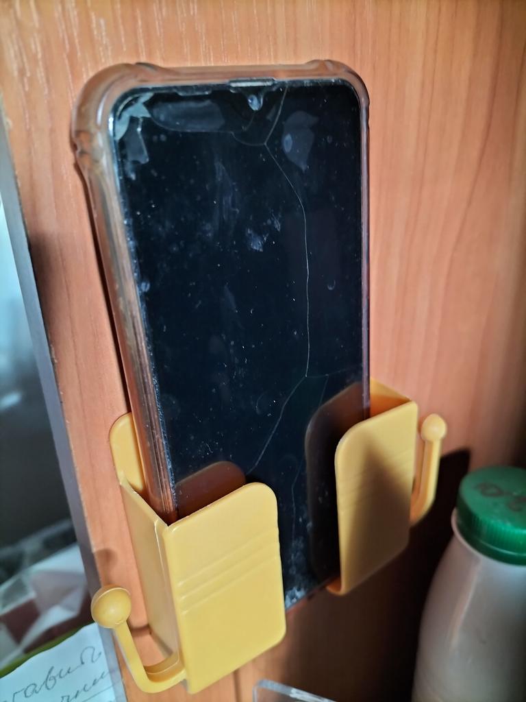 I glued it to the door, inserted the phone, the structure holds well 👍