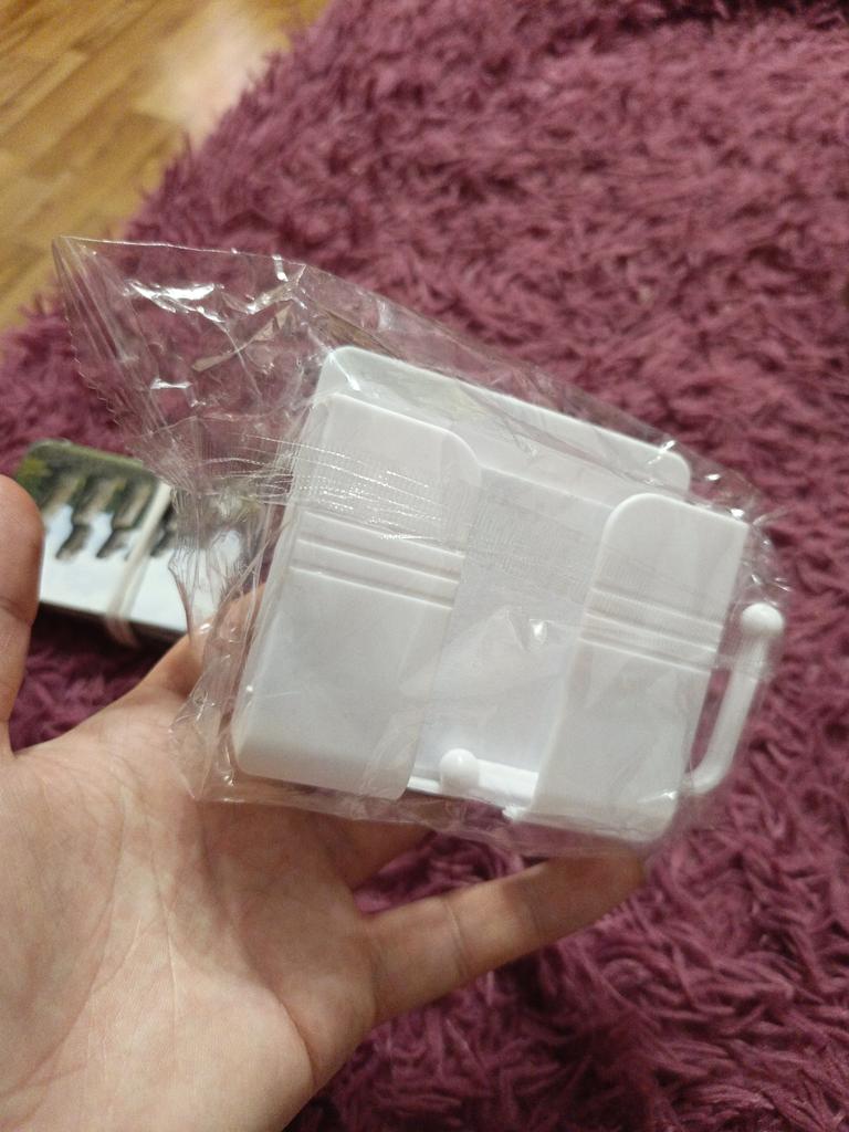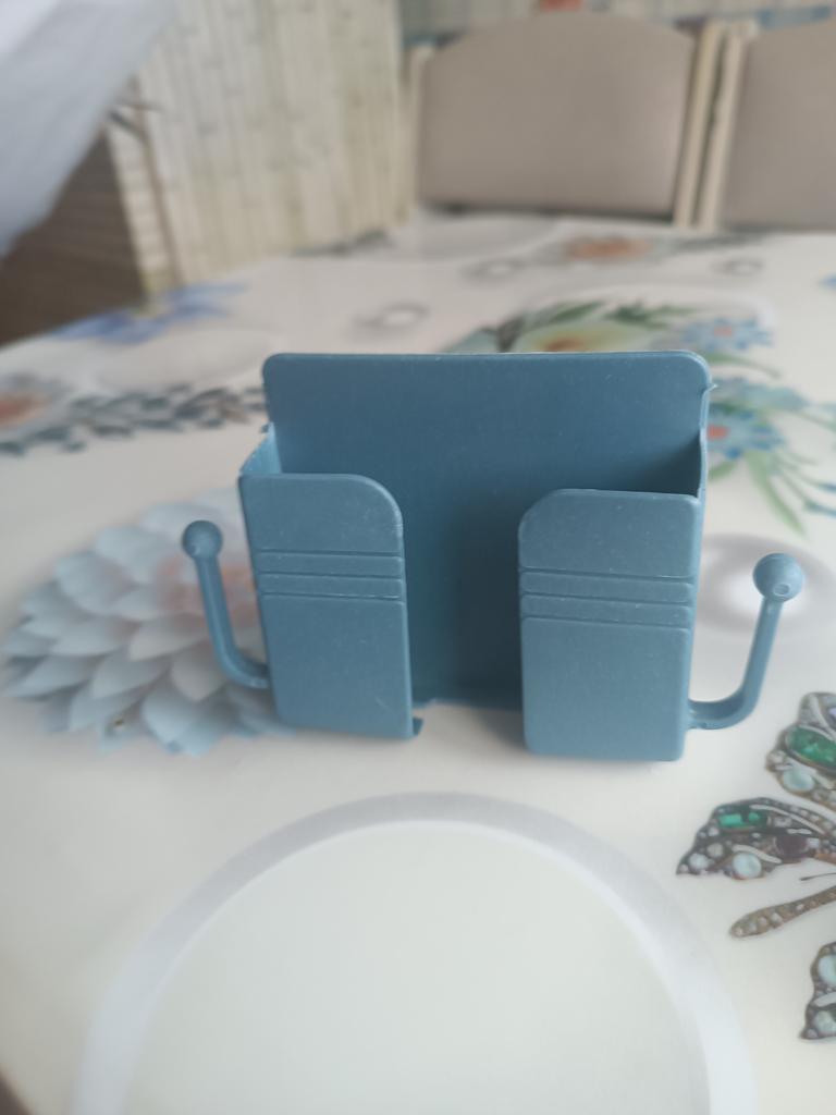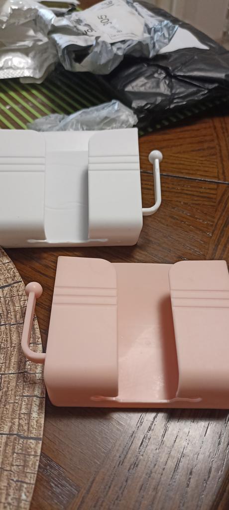 Interesting wall holder for phone or remote control. I order 2, the first was yellow to match the furniture. And this one to match the wallpaper. But haven't installed it yet. Very convenient to charge your phone and always know where it is so you don't have to look all over the house, and also the remote control. There were 9 orders in the package. Thanks everyone.
