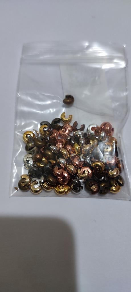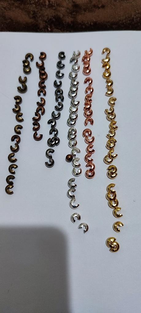 100 pieces, as stated: silver - 24 (10 dark, 14 light), bronze - 24, gold - 21, gun black - 15, rose gold - 11, copper - 5. The metal is thin, there are few covering beads softer than those that I constantly use, and it is not yet clear whether this is good or bad. Thank you.