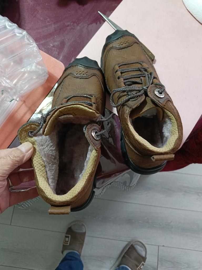 The order arrived on time. No defects were found. The quality is not bad. Upper material: genuine leather, lining: artificial fur. The sole is rubber, very soft, of dubious quality, with many empty spaces. I think that when worn, it will wear out quickly and holes will form or there is a risk of puncturing and water will get in. Unless you wear it only in frosty weather, in weather without puddles.