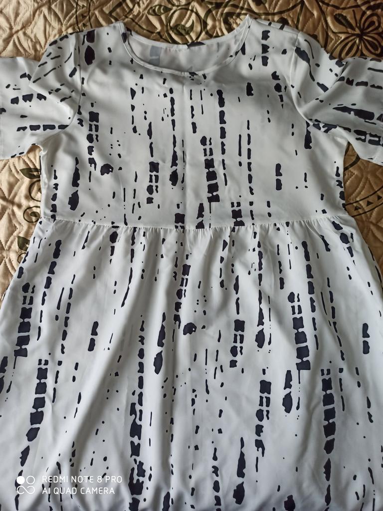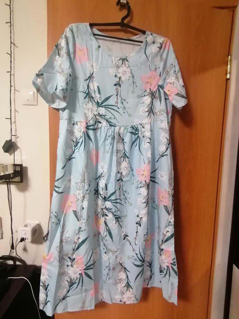 In the photo it’s a dress, but in reality it’s a nightgown. No shape, no waist bag.