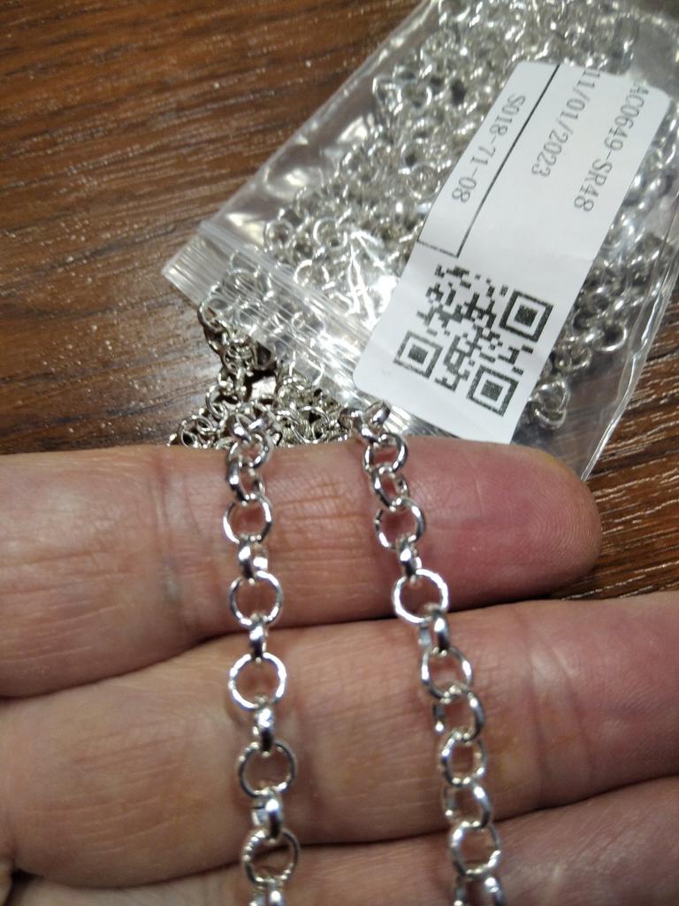 Nice chain. It is strong enough to tear. There are all 5 meters. Thanks to the seller for his honesty. The only drawback is that the chain was placed in a regular zip bag and had to be unraveled.