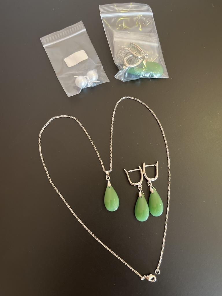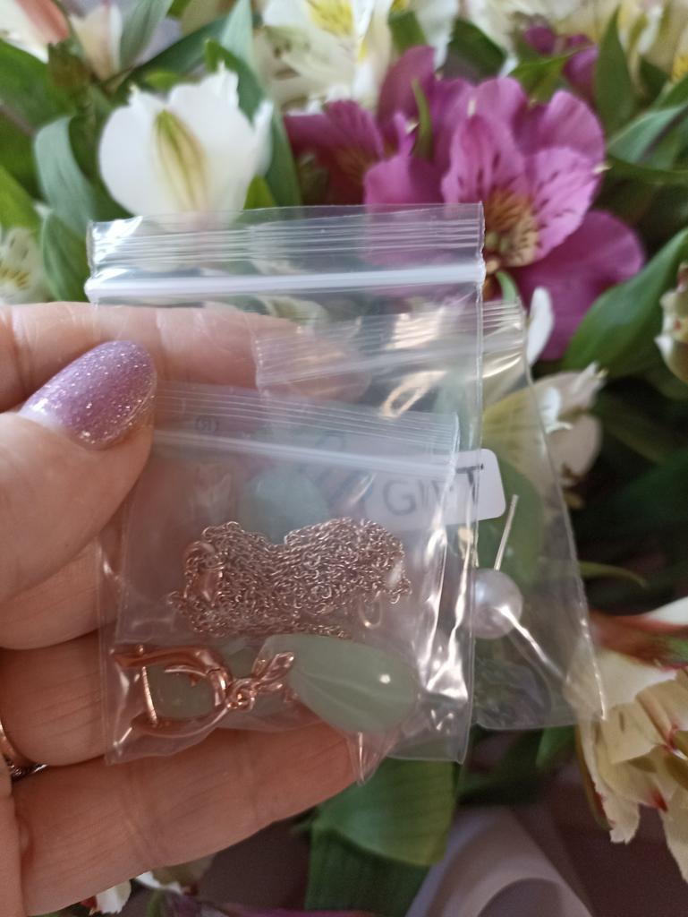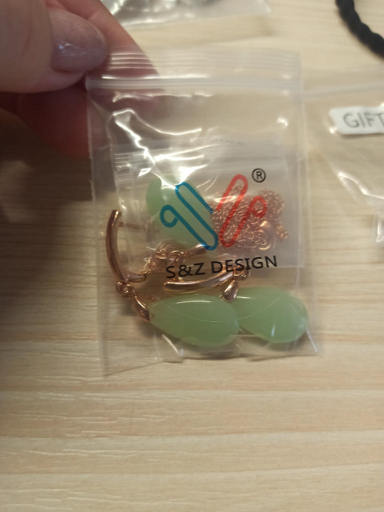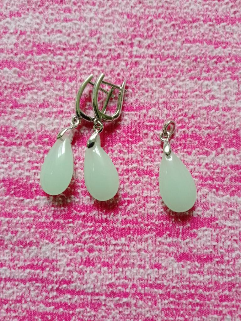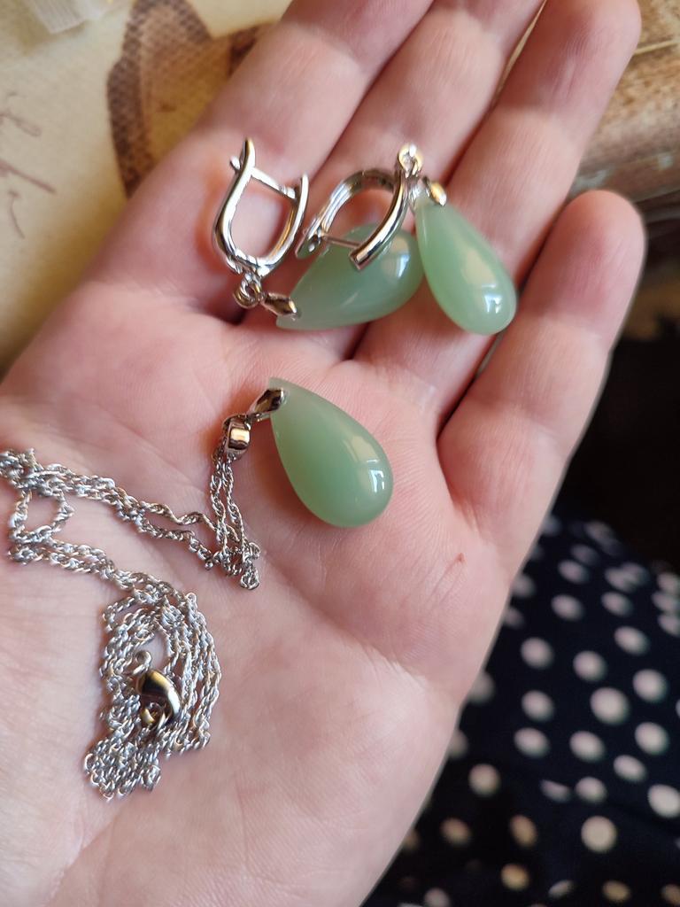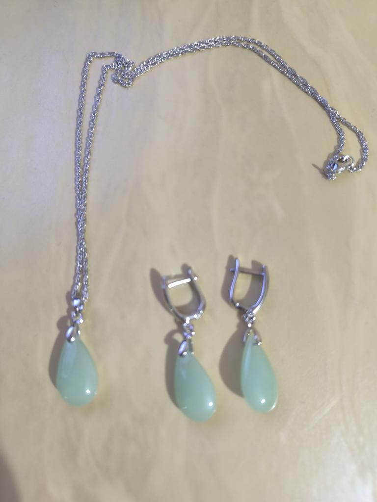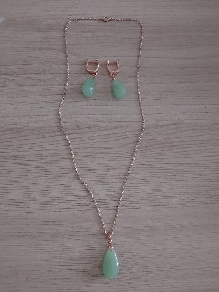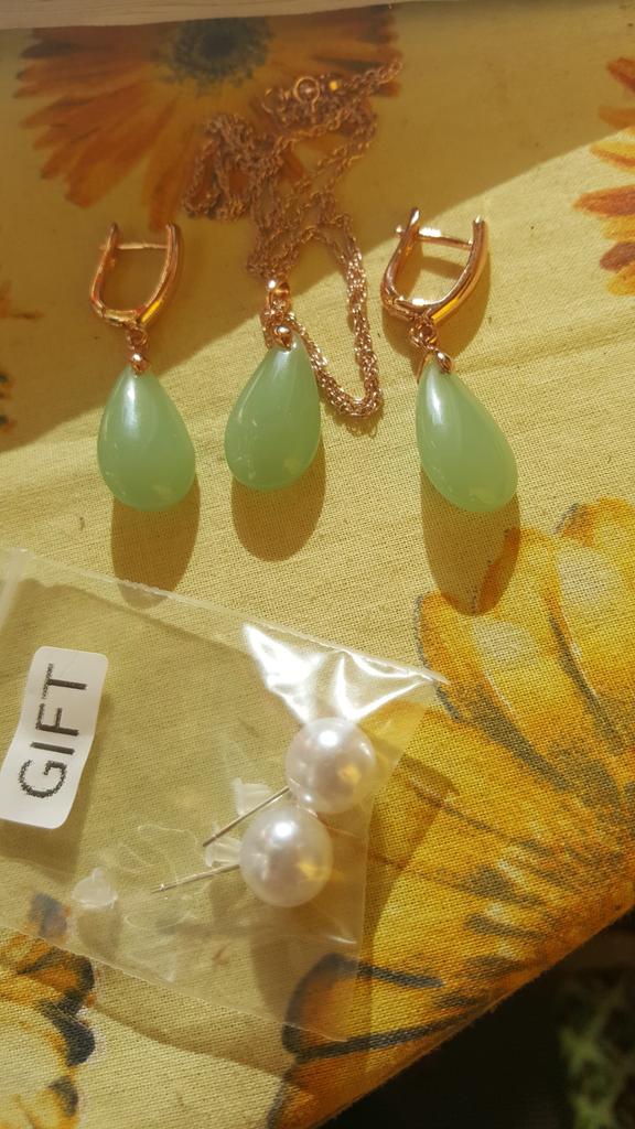 A set of earrings and a chain, very beautiful, as in the picture... The color is dark green, ... And they also put a gift, beautiful earrings - carnations.... I am very satisfied, thank you, the sellers and the Jum store..