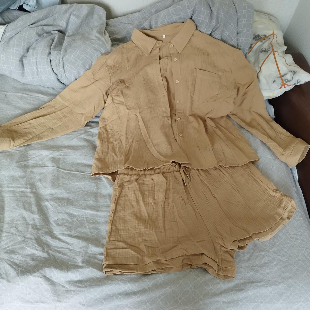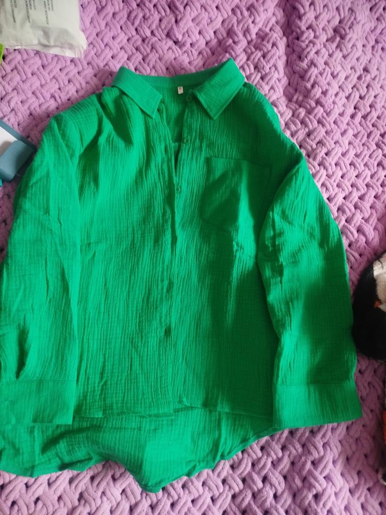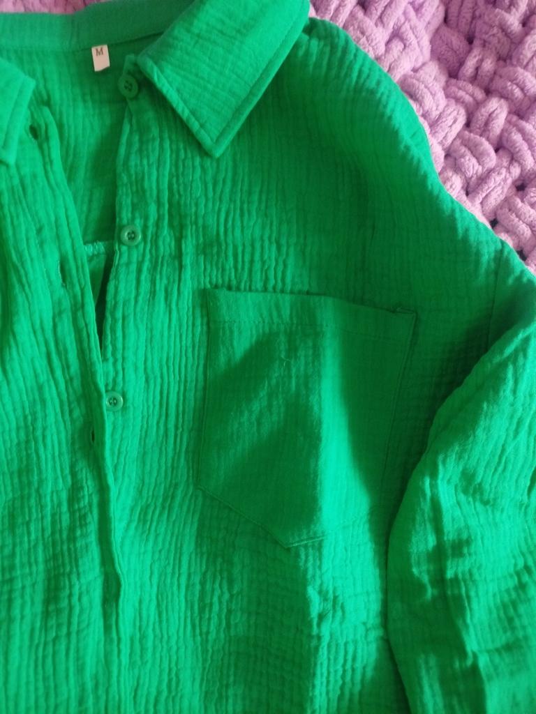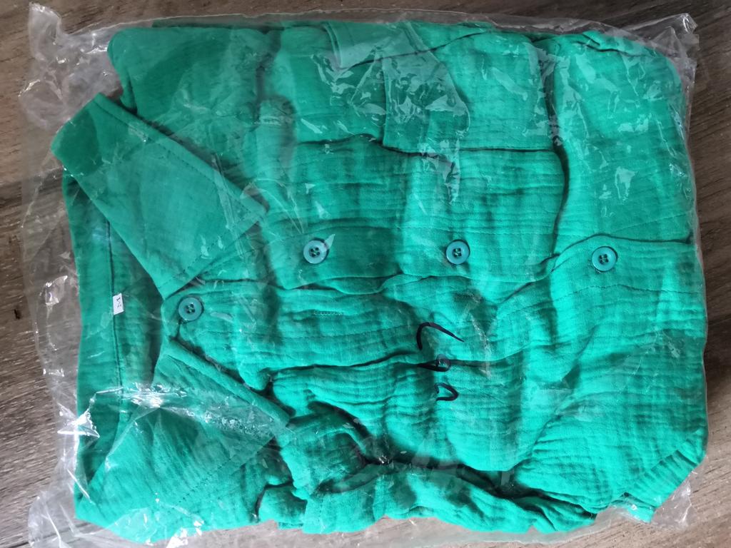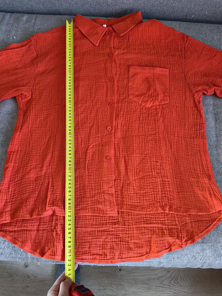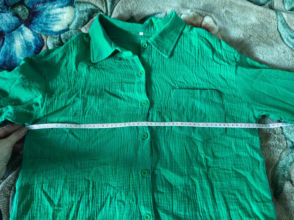 The shirt is short but wide, good quality, the fabric is muslin, looks more like pajamas