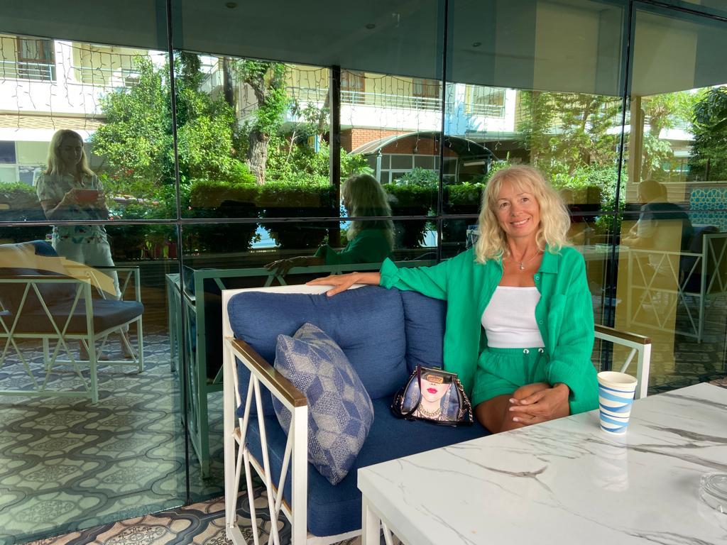 Cool summer suit. The size chart is the same, the color is as in the picture. I recommend.