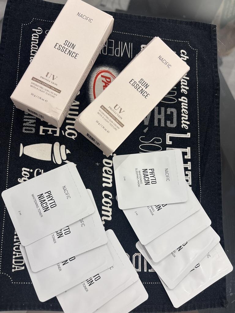 Thank you 🥰 also for the free gifts : 5 whitening sleeping masks and 5 whitening toners, these are two sunblock spf 50 +++ sunscreens with a light texture, quickly absorbed and especially recommended for combination and oily skin, to prevent photoaging, spots and wrinkles..and they are essence creams that like all Korean products do not clog pores. I ordered two taking advantage of the promotion😍one for me and one to give as a gift! Thank you, 🔝 shop