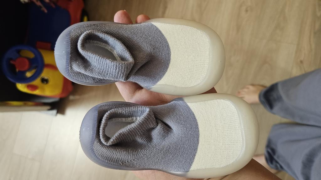 Cute socks with silicone soles for our little one. I took them for 8 months. They are a bit big, but the baby is just trying to walk. I think in a month they will fit just right