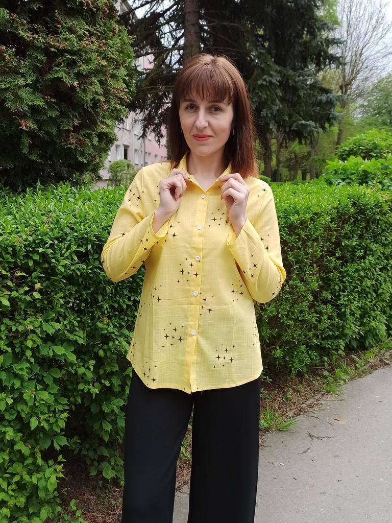 Stars Printed Long Sleeve Shirt Turn Down Collar Button Up Loose Tops Women Plus Size Blouses