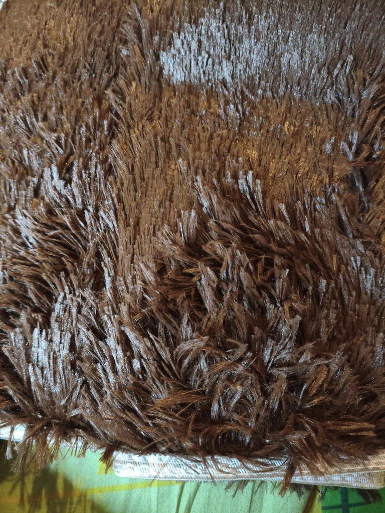 The color is bright, the pile is even. Very thin, highly electrified.