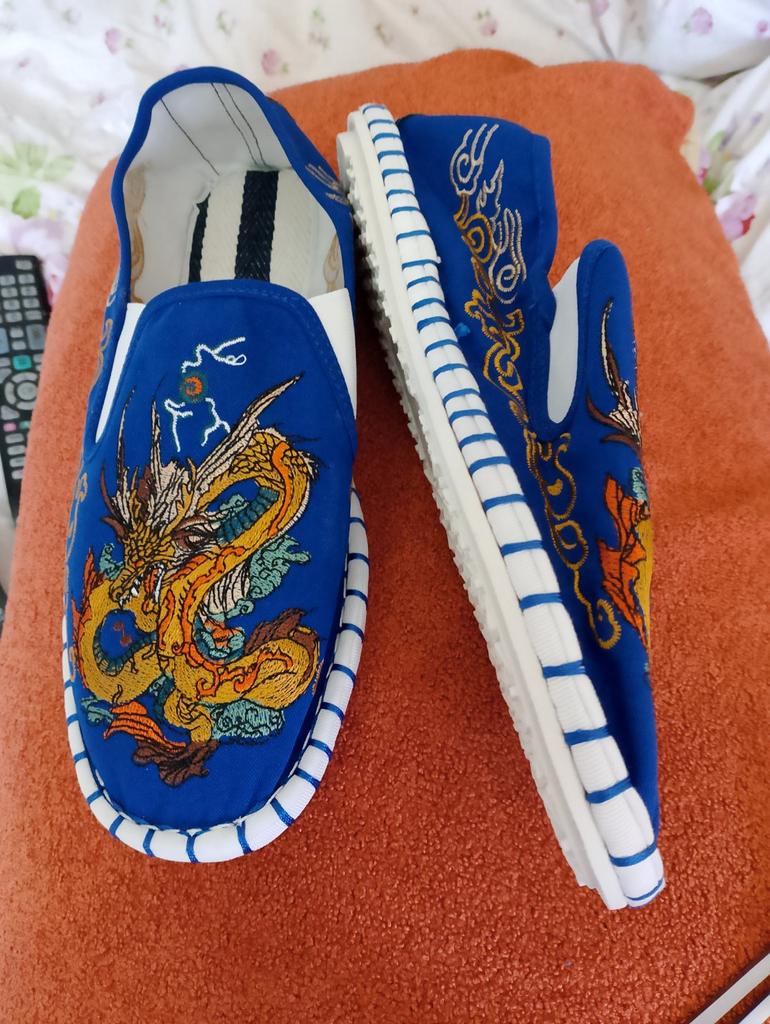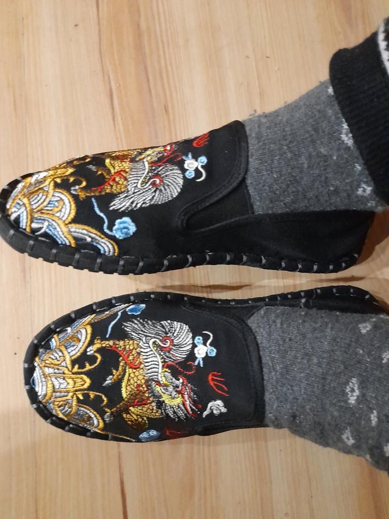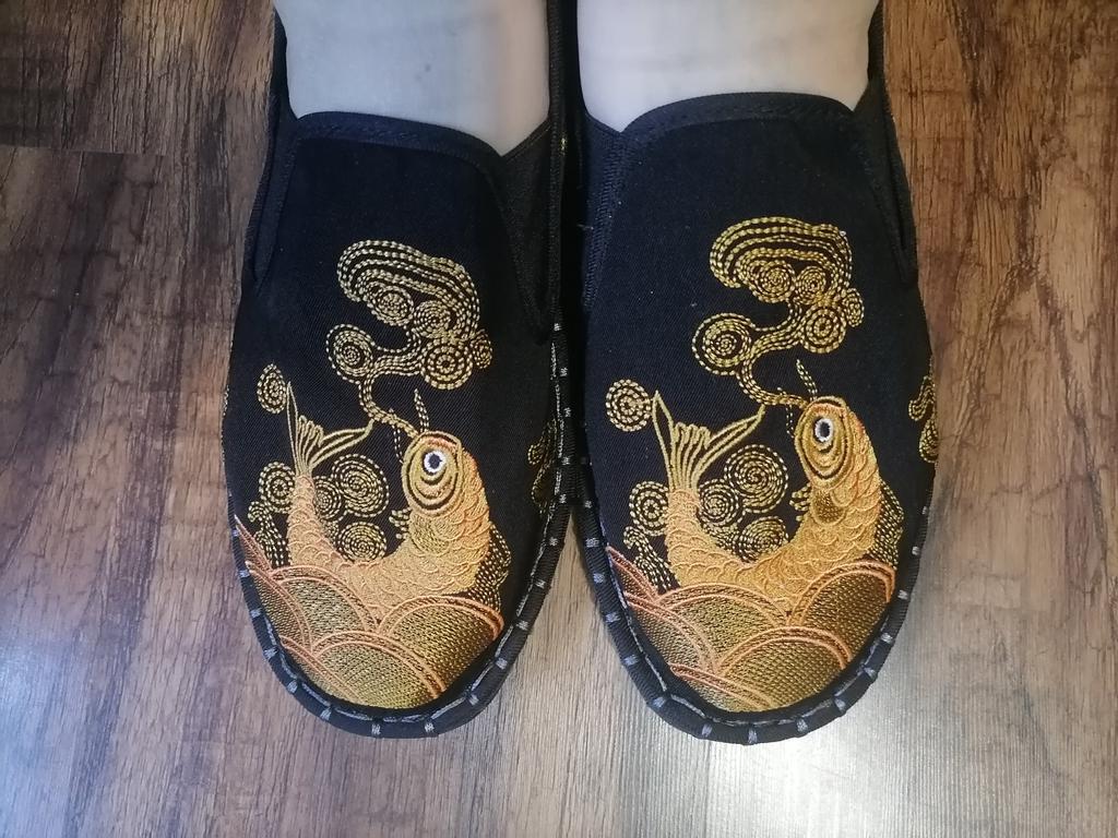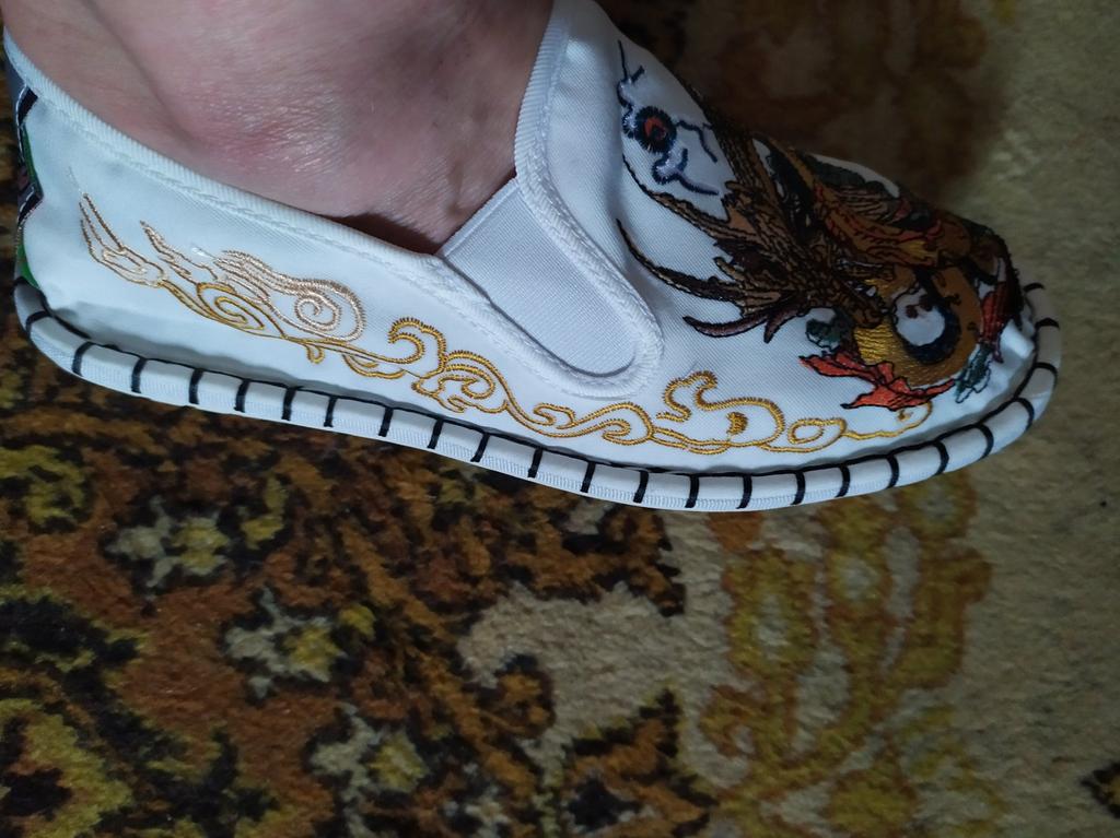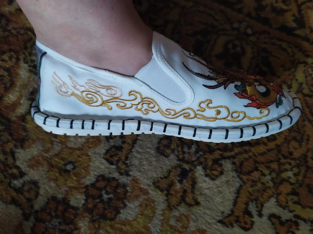 The quality is good, both the fabric and the embroidery, but small and not very suitable for a wide foot. For foot length 26.5 at point-blank range. I took size 43.
