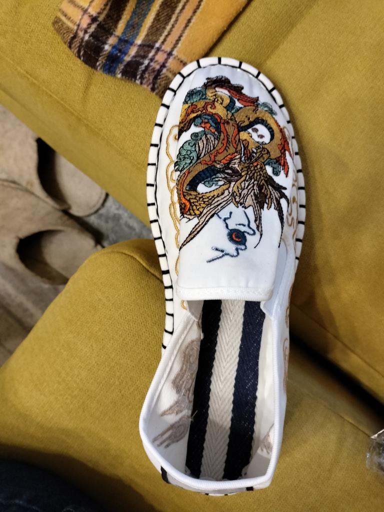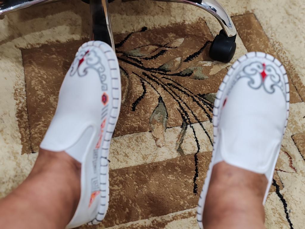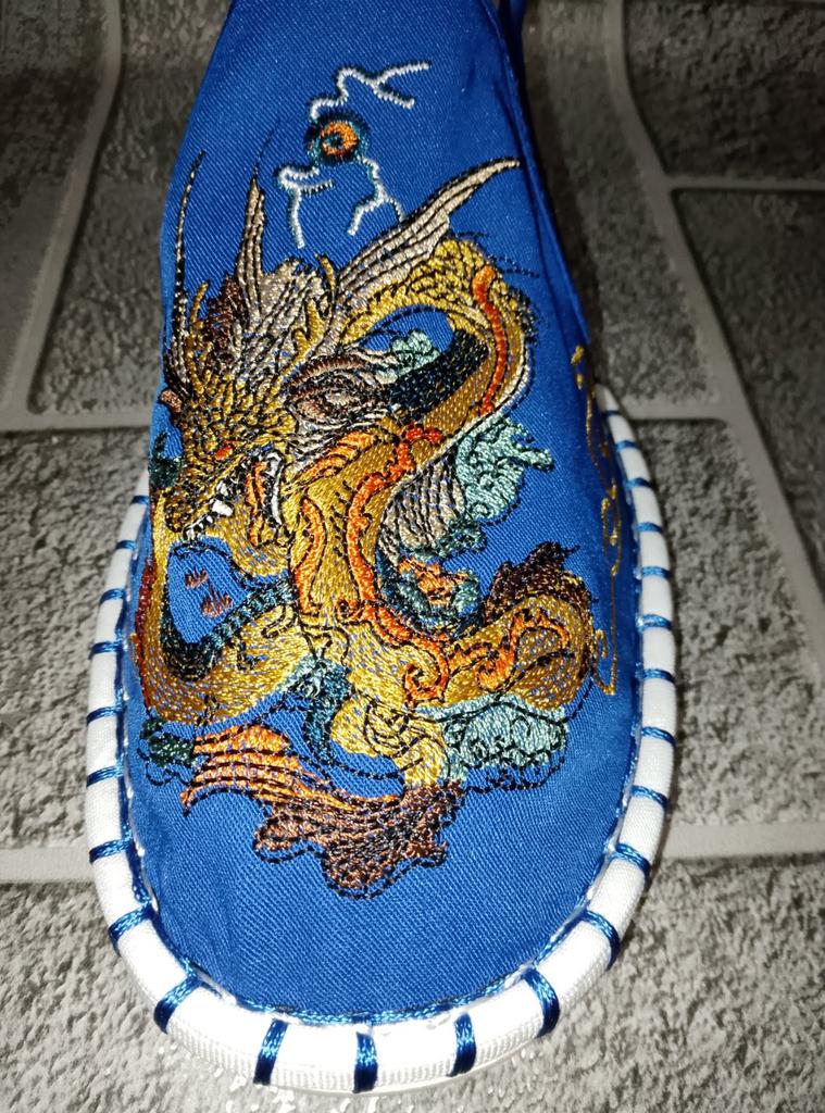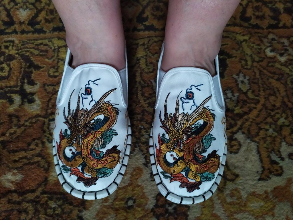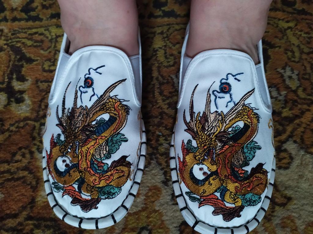 The quality is good, both the fabric and the embroidery, but small and not very suitable for a wide foot. For foot length 26.5 at point-blank range. I took size 43.