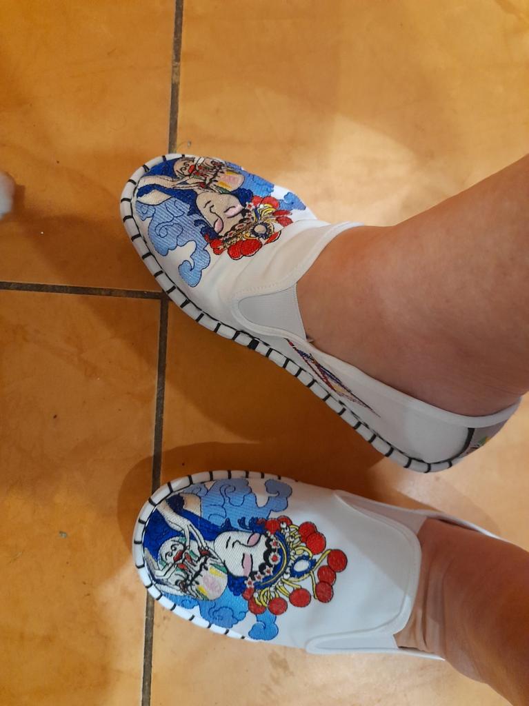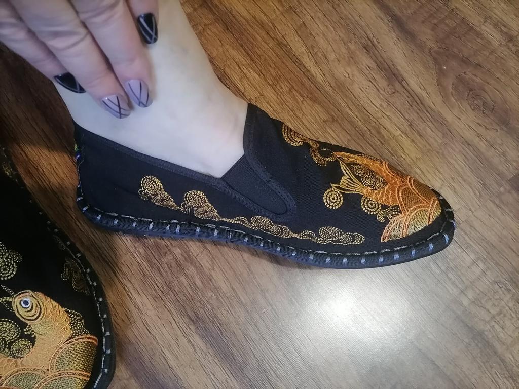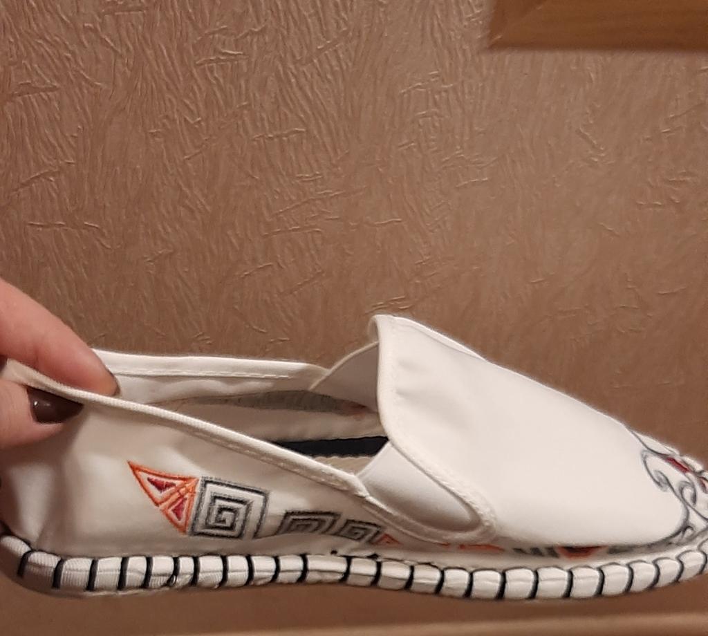 The shoes are excellent-fabric, embroidery! For my wide foot with a bunion, size 39-40, I took 42 so that my orthopedic insole would fit. It all worked out. Thank you.