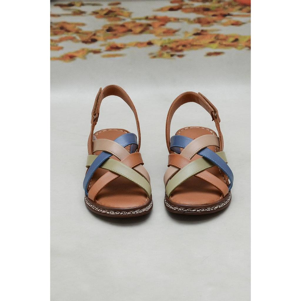 Women's Tan Genuine Leather Comfort Sole Multi Sandals Comfort Casual Quality Style Light Sandals