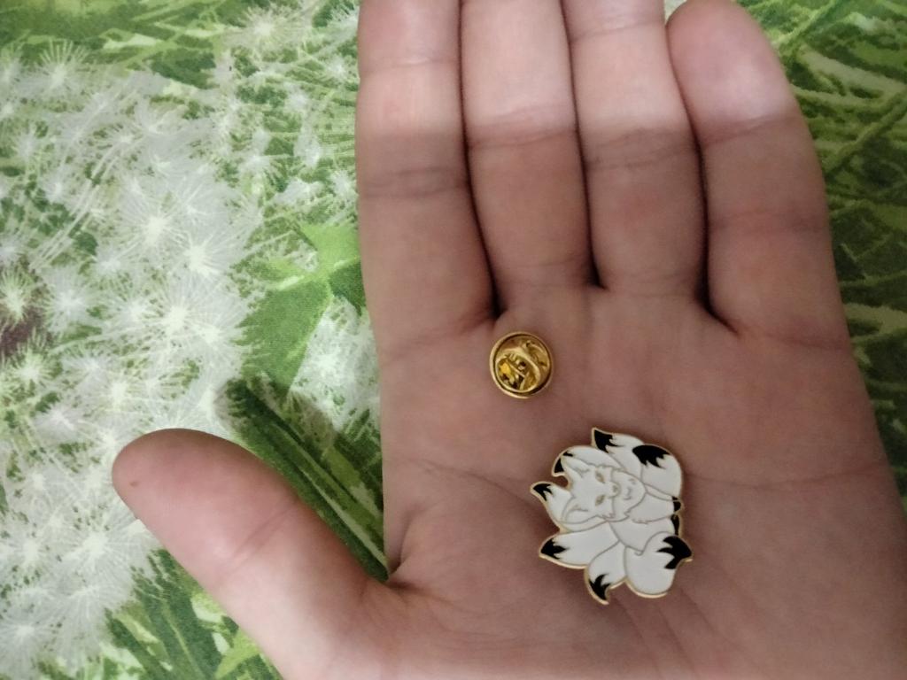 Very neat kitsune. They are perfect. The plug is silicone, not like pin brooches. It will be very good for a thick fabric like a coat, because it is heavy on a thin one.