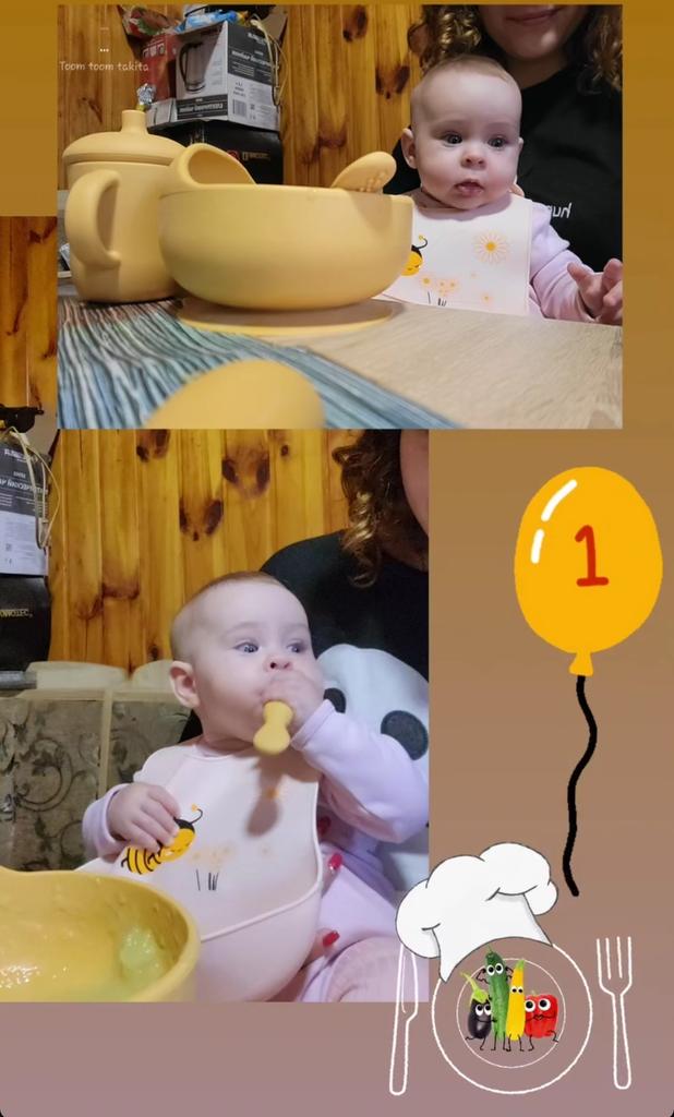He doesn’t eat it himself yet, but he’s already trying it with a spoon.