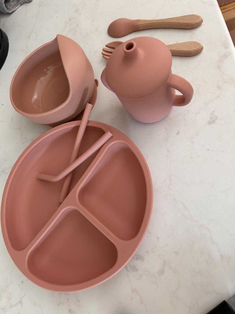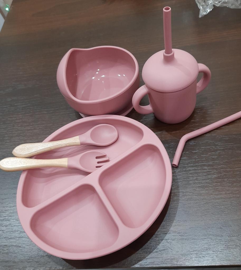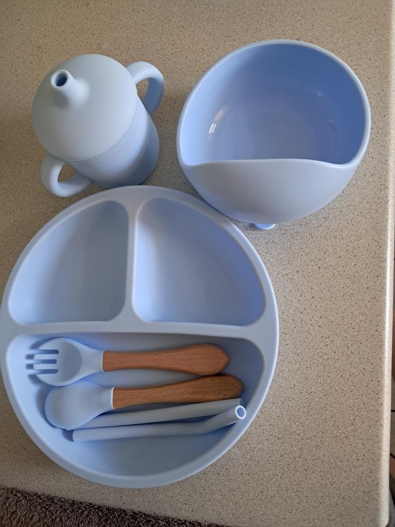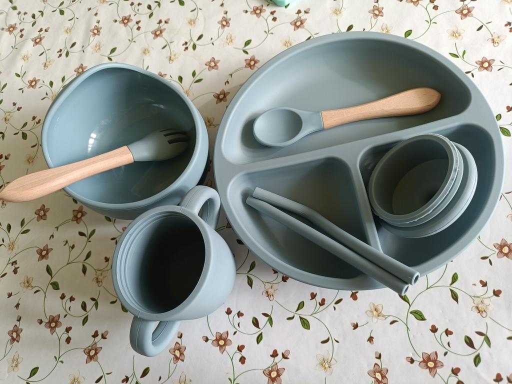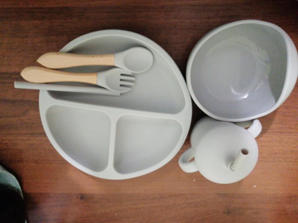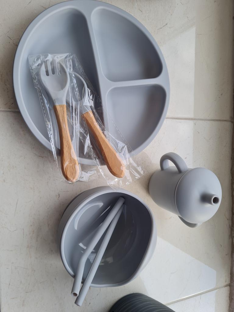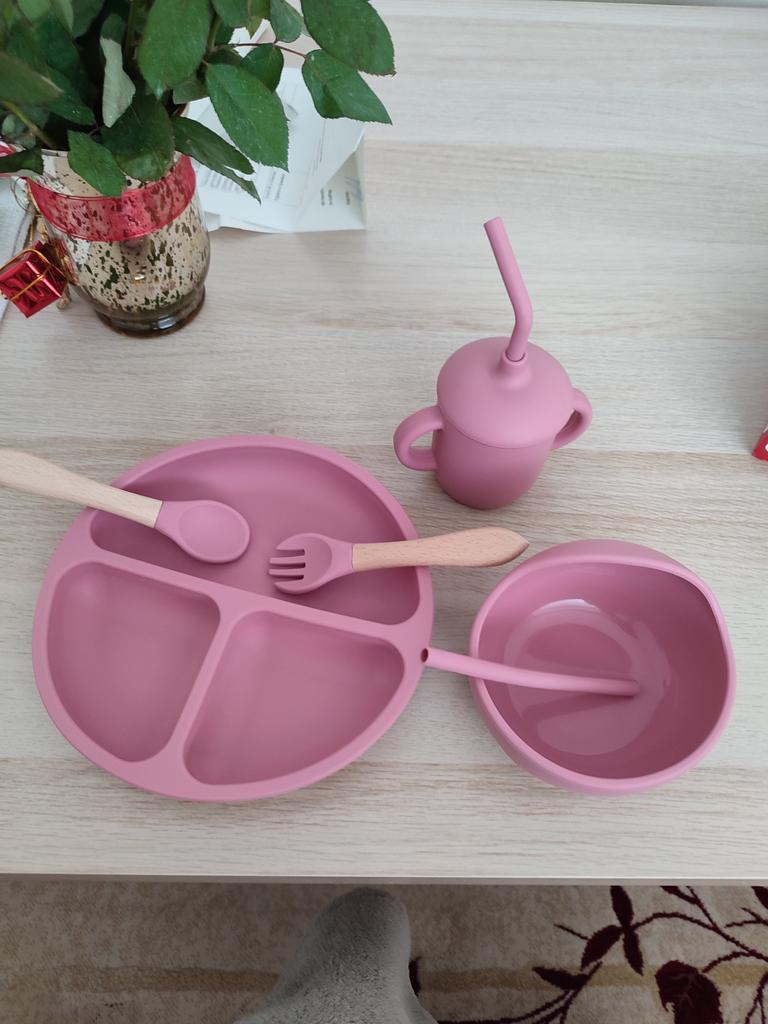 A wonderful set of dishes 🥰 no smell, comfortable, sticks well to the surface, everything is soft and safe😍 The goods arrived very quickly - less than 2 weeks, sent quickly. At this price, you can probably buy only 1 plate with utensils from us, so I highly recommend buying it ;)
