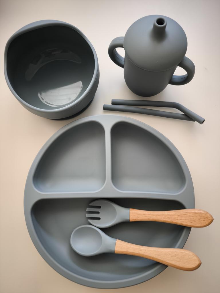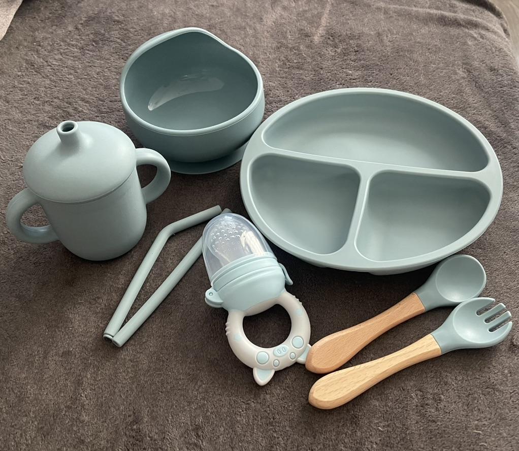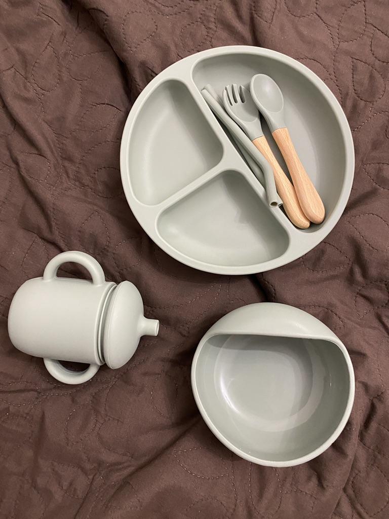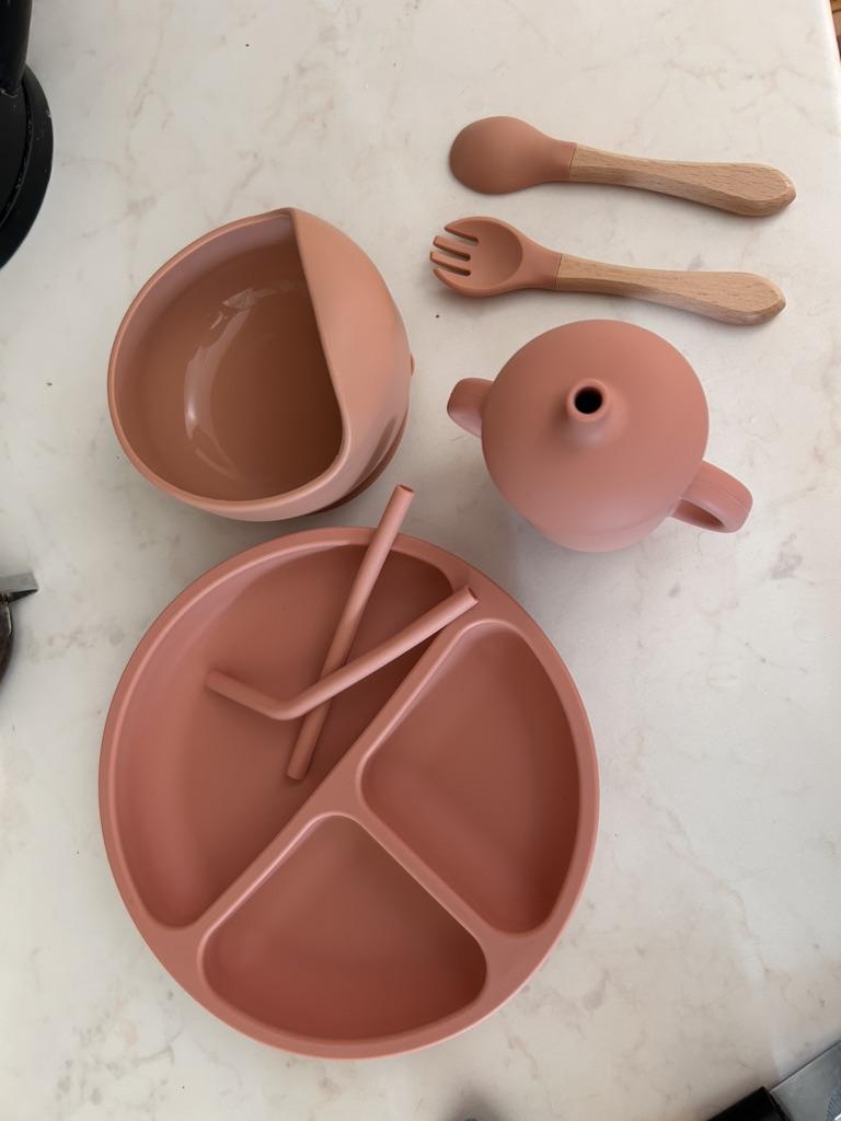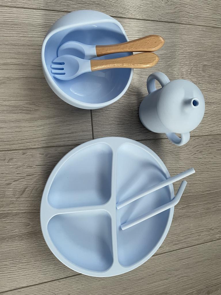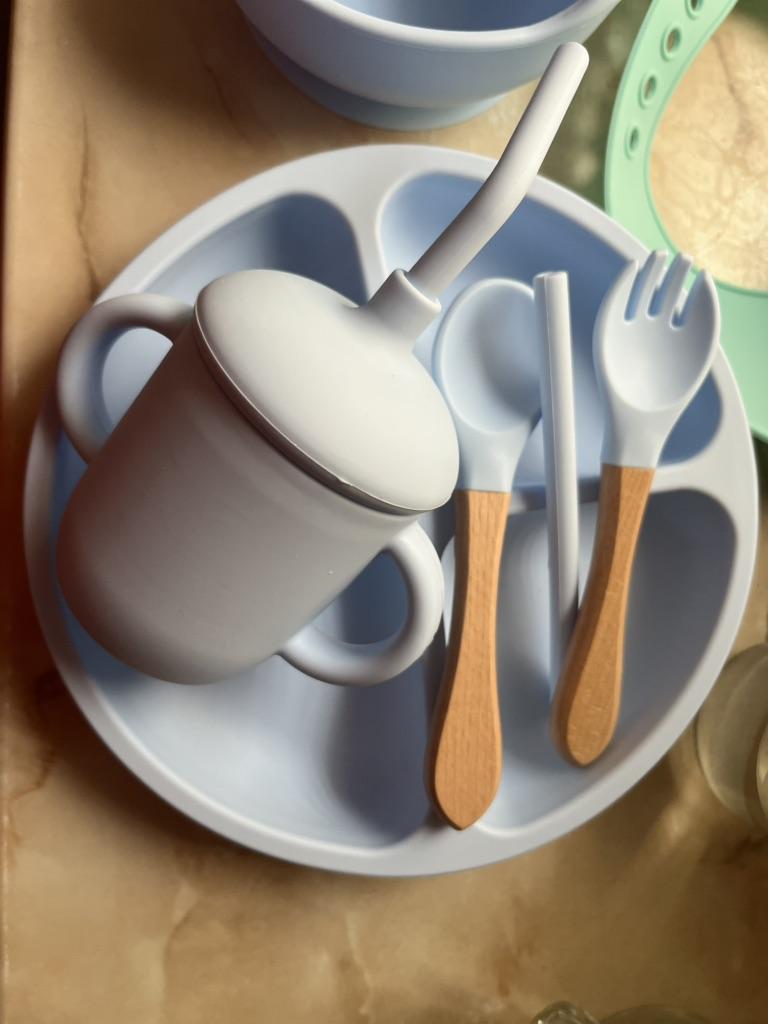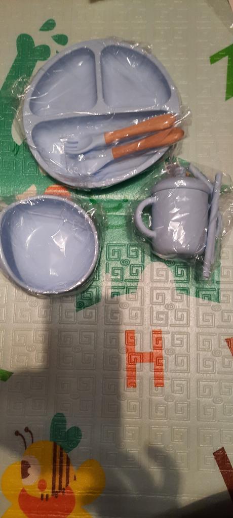 A wonderful set of dishes 🥰 no smell, comfortable, sticks well to the surface, everything is soft and safe😍 The goods arrived very quickly - less than 2 weeks, sent quickly. At this price, you can probably buy only 1 plate with utensils from us, so I highly recommend buying it ;)