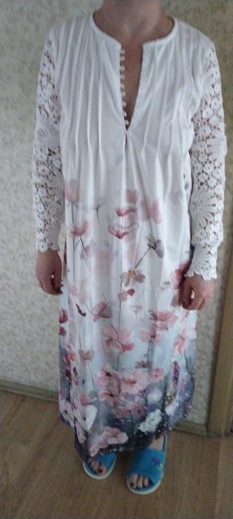 "Evening, bohemian" - this is probably an evil joke. Banal T-shirt fabric, well, thin knitwear, not half-short, the sleeves are stiff and long. This is not an evening dress at all, it is embarrassing to go out in it, I will rip off the sleeves and the purpose is only a nightgown. I think this was my last order on Joom, the product does not match what is shown to us in the picture