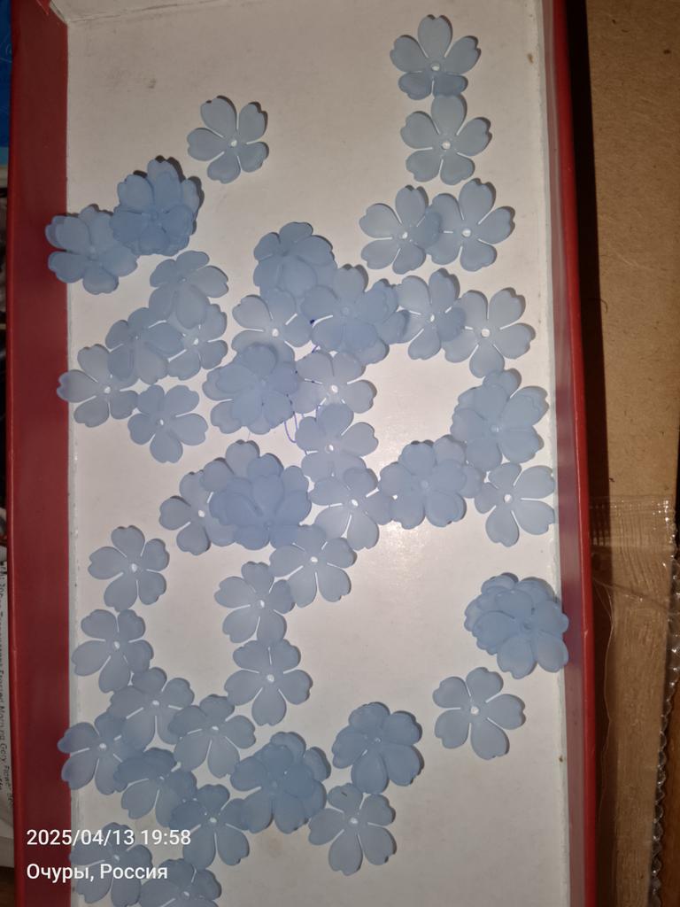 I received my order, the flowers are just wonderful, I thought they would be small, but they are 1.5 cm for work, they will be simply magical, there were 55 pieces in the bag, 5 more than in the description.