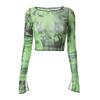 2023 Gothic Print Mesh T-shirt Sexy Hollow Out Long Sleeve Pullover Tee Y2K Fairy Grunge Vintage Women Fall Crop Top