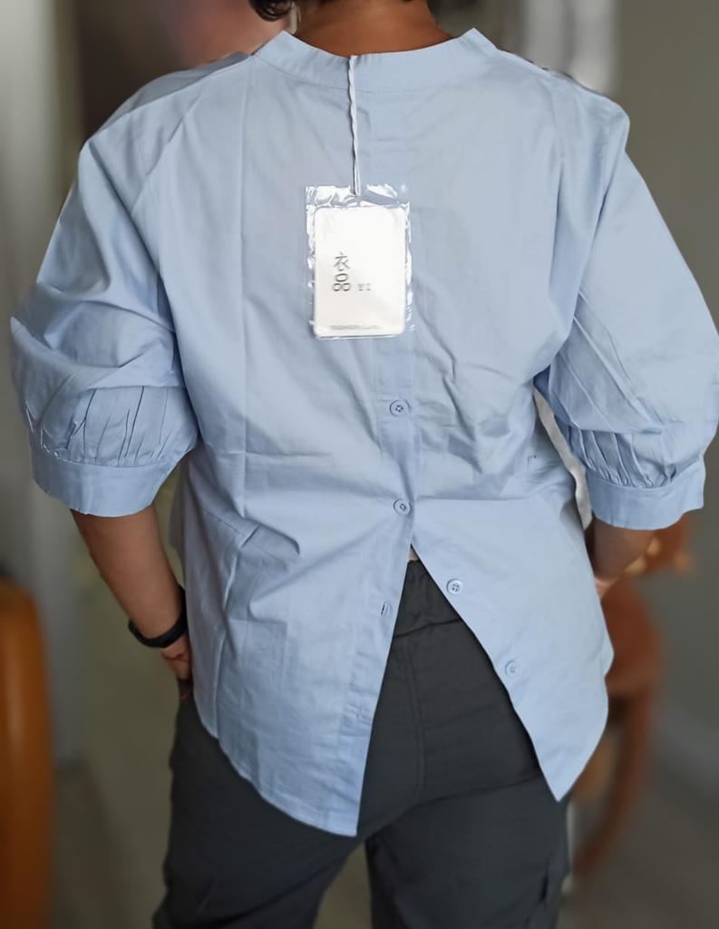 Cotton Korean Loose Large Women's Lantern Sleeve Shirt Women's Back Split Irregular Solid V-Neck Blouse Top