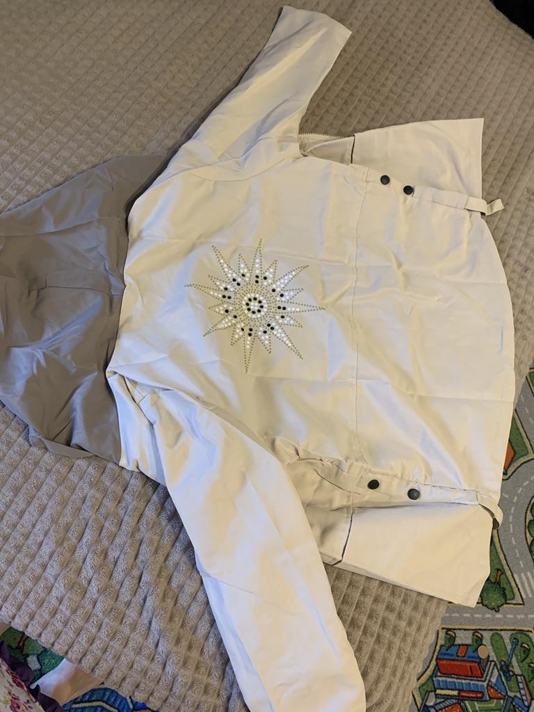 A cute jacket, the quality is good. The sleeves could have been longer.