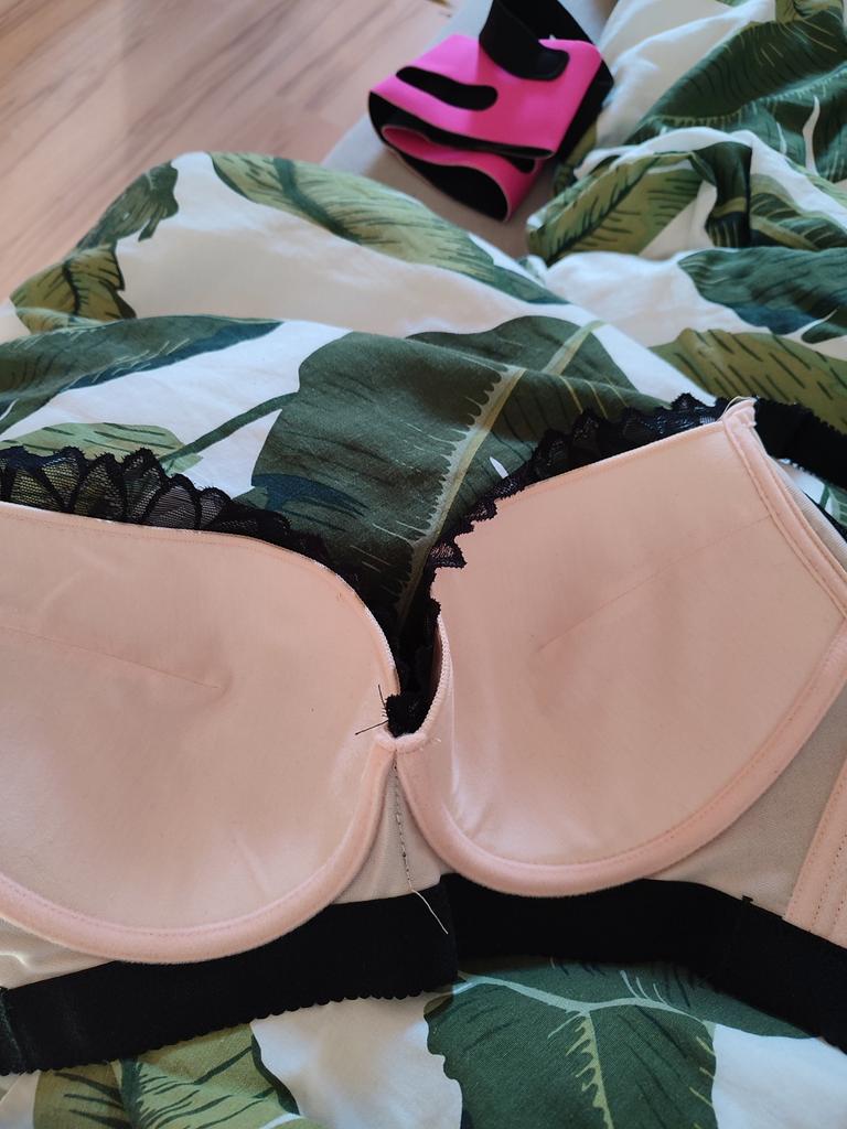 Sewn bra Excellent quality good cotton inserts wide elastic on the sides wide elastic on the straps good cool points locks color fabric very nice but incredibly incredibly small if still more or less in volume then it's hard I need times or rather 2-3 sizes bigger unfortunately (