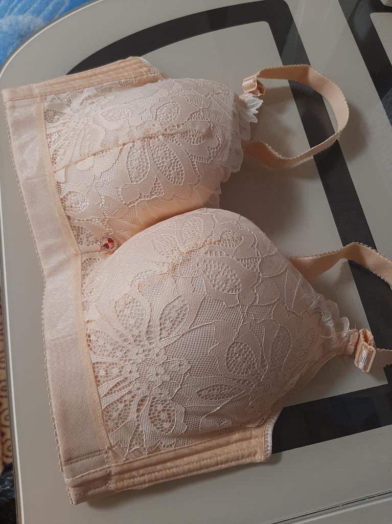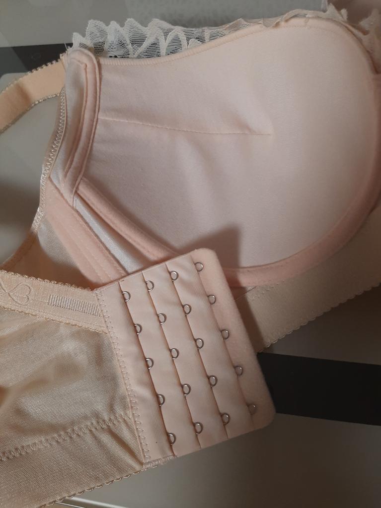 Wonderfully sewn, beautiful seams, wonderful cotton inserts, beautiful lace, good wide straps and good back clasps, good wide elastic on the sides, but this bra almost fits me, although it would be good to be 1 size larger, the volume is good, but the size is not f at all. It's a great, great pity, and I was so worried about such a bra😢😢😢
