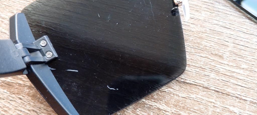 The glass is cracked and the arms are barely holding on.