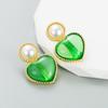 Women Retro Drop Earrings Titanium Steel Alloy Pendant Earrings Acrylic Colorful Resin Bead Heart Shape Geometric Ear Ornaments