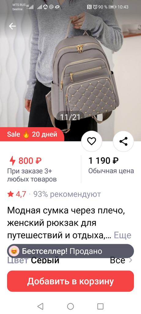 A good, large enough, comfortable backpack. A small fly in the ointment: I took the gray model. Beige arrived (beige is not light, but a classic beige color). Question: Was it mixed up, or is it gray?