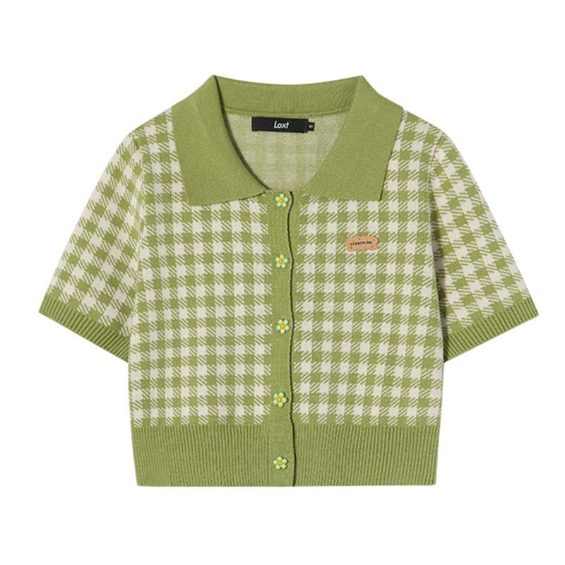 Features: Spring and summer, gentle wind, knitwear, women, small man, short, plaid, cardigan