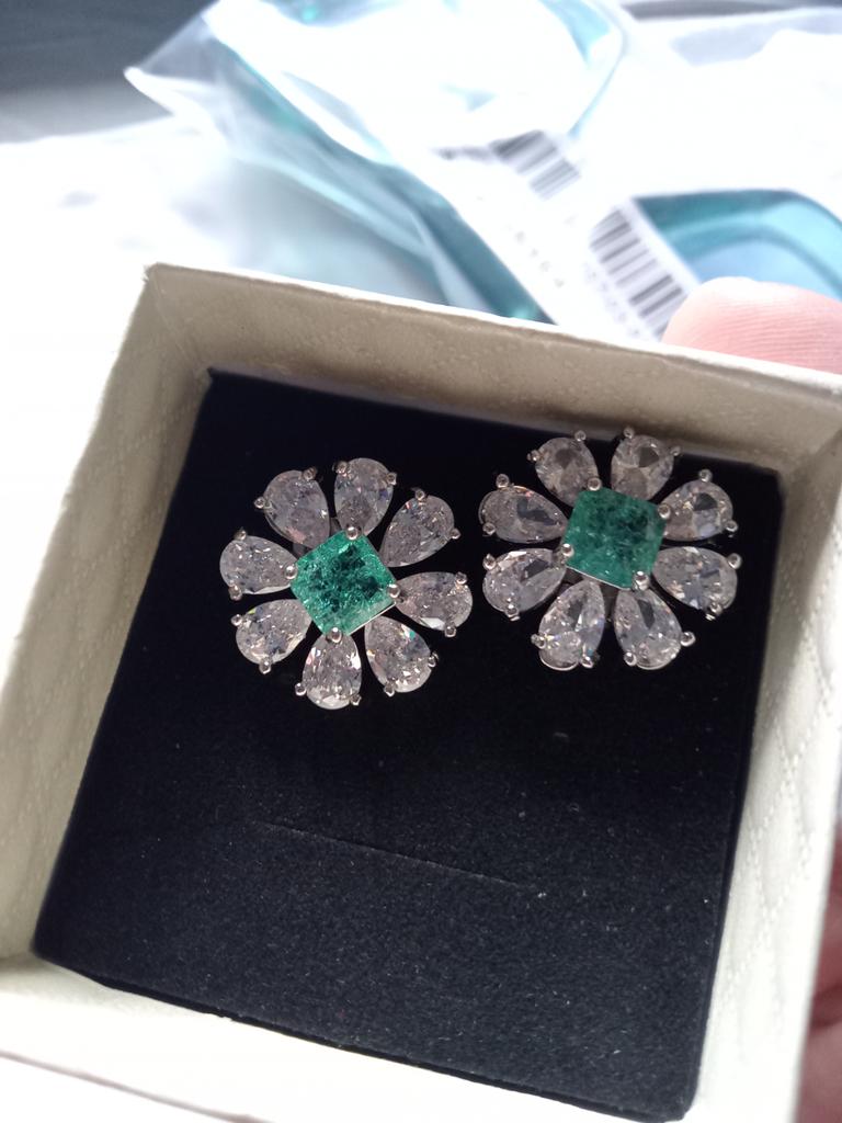 Cellacity Women Paraiba 925 Sterling Silver Stub Earrings with Square Shape Gemstones Flower Designer Female Fine Jewelry Gift