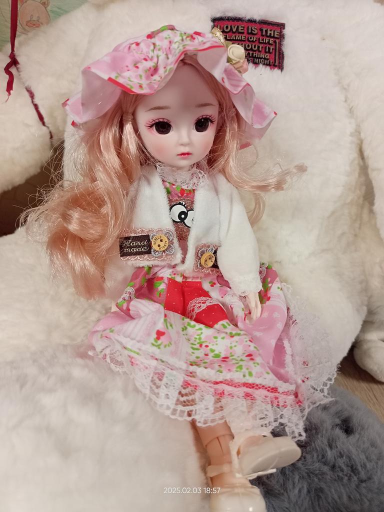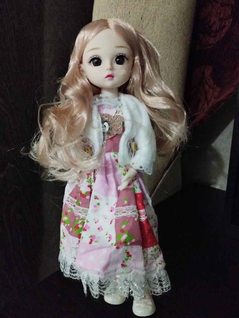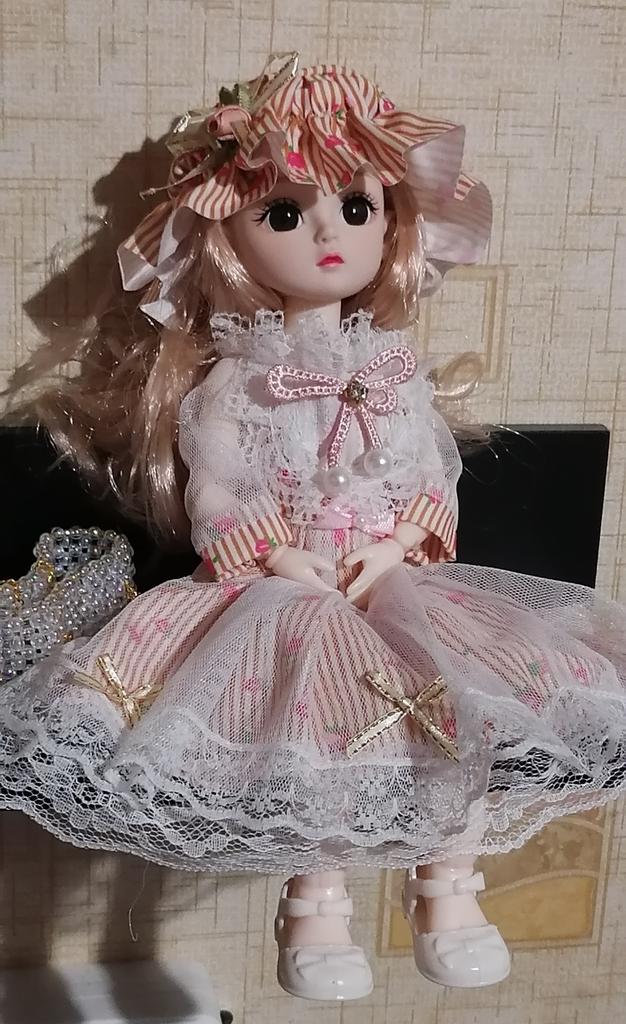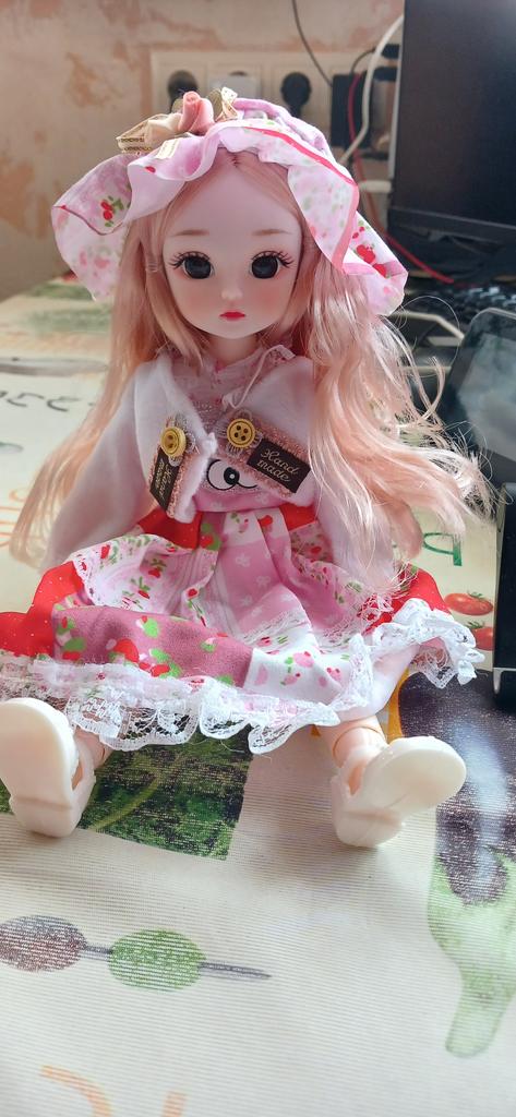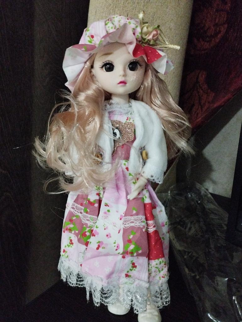Beautiful doll! Made with high quality. The doll has very beautiful fluffy hair and a neatly sewn dress.