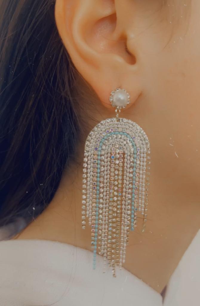 Luxury Statement Dangle Earrings Women's Earrings Rhinestone Fringe Hanging Zircon Earrings Long Shiny Wedding Statement Party Statement Earrings