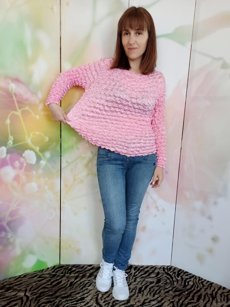 I like the blouse, and the color is beautiful. I previously ordered one with short sleeves