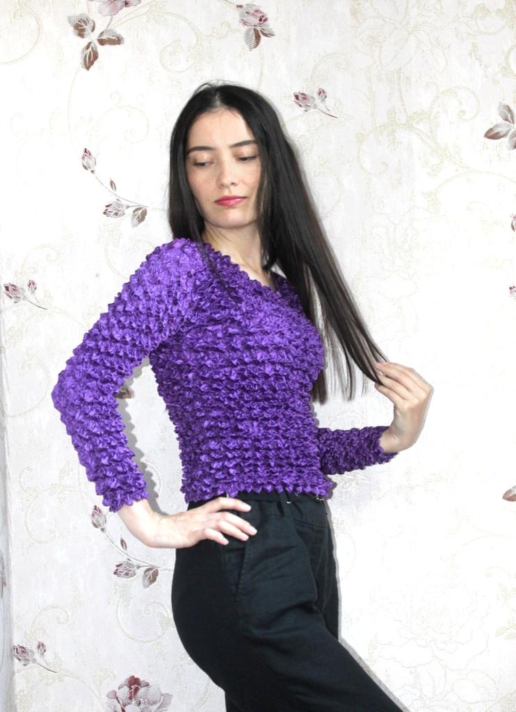 Pleated Pineapple Shirt Fashion Bubble Shirt Versatile Magic Shirt Long Sleeve Large Fit Women's Clothing
