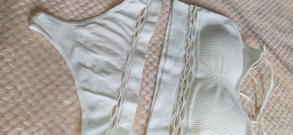 The top is a little big for me, but that's not a problem. An unusual material, in my opinion it is suitable both for everyday wear and for a spontaneous trip to some body of water, since the material is somewhat reminiscent of a swimsuit, but this is my personal opinion. Everything is great!
