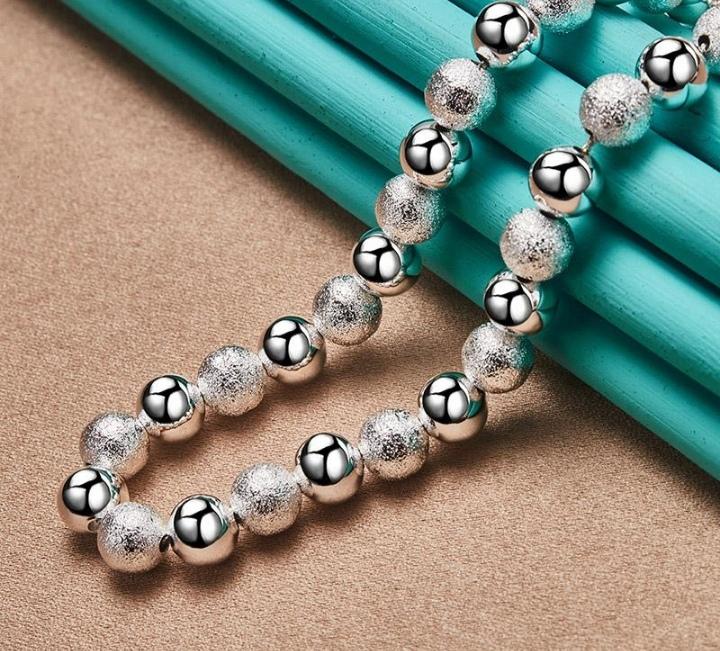 925 Sterling Silver Smooth Matte 8MM Beaded 18 Inch Necklace For Women Fashion Jewelry