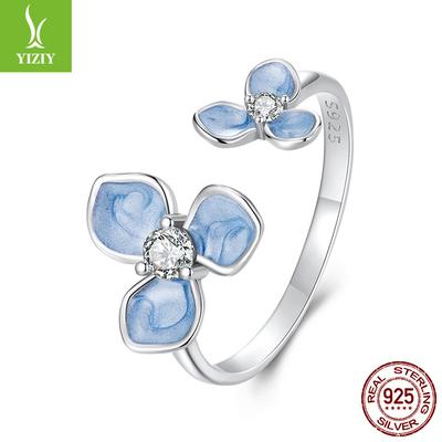 Luxury Asymmetric Enamel Flower Round Sapphire Zircon Couple Ring For Women Original Sterling Silver Christmas Gift Jewelry