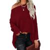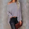 Spring and Autumn Women's T-shirt Casual Off-shoulder Bat Long Sleeve Waffle Knitted Oversized Pullover Sweater Pullover Tops